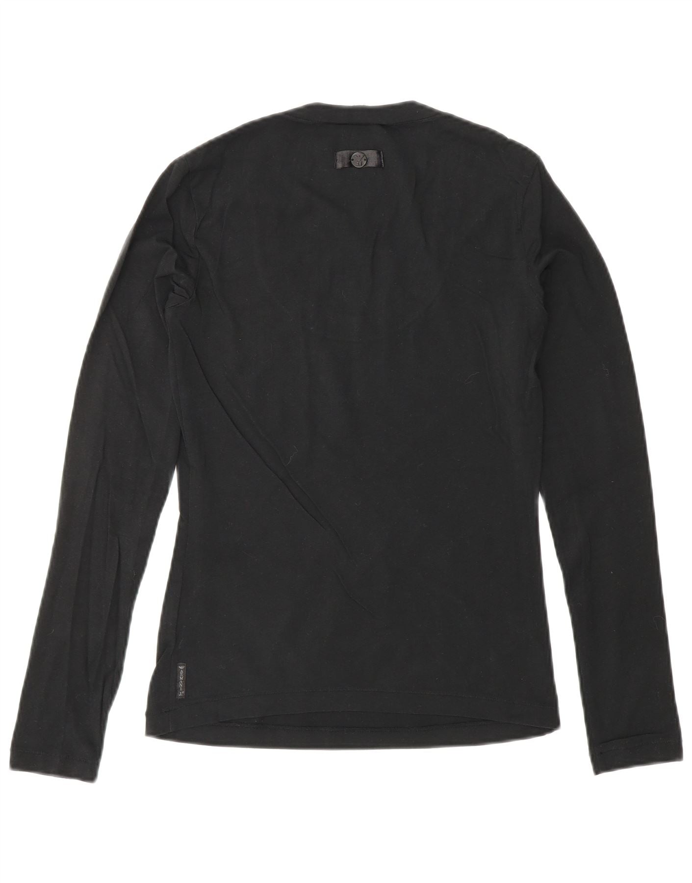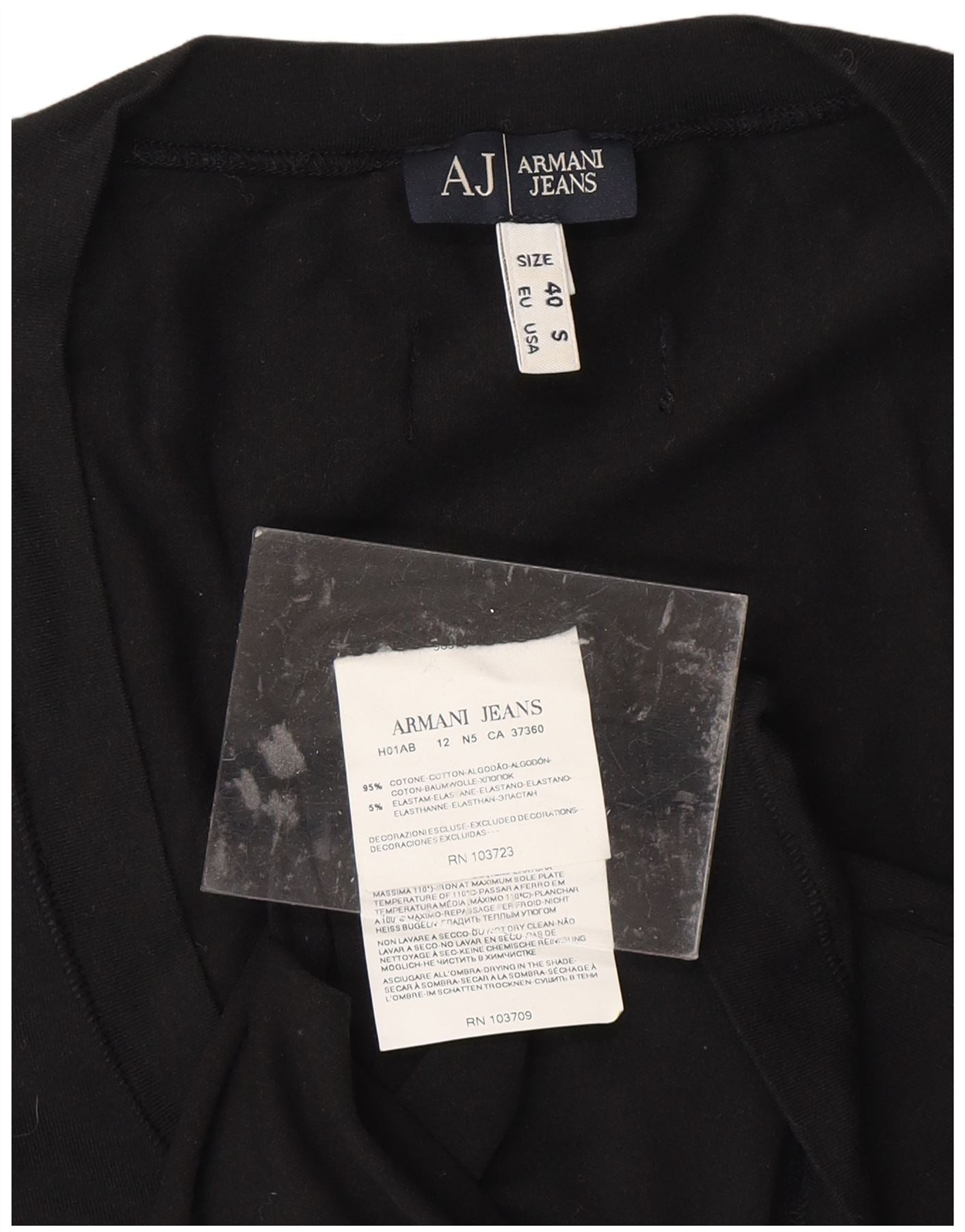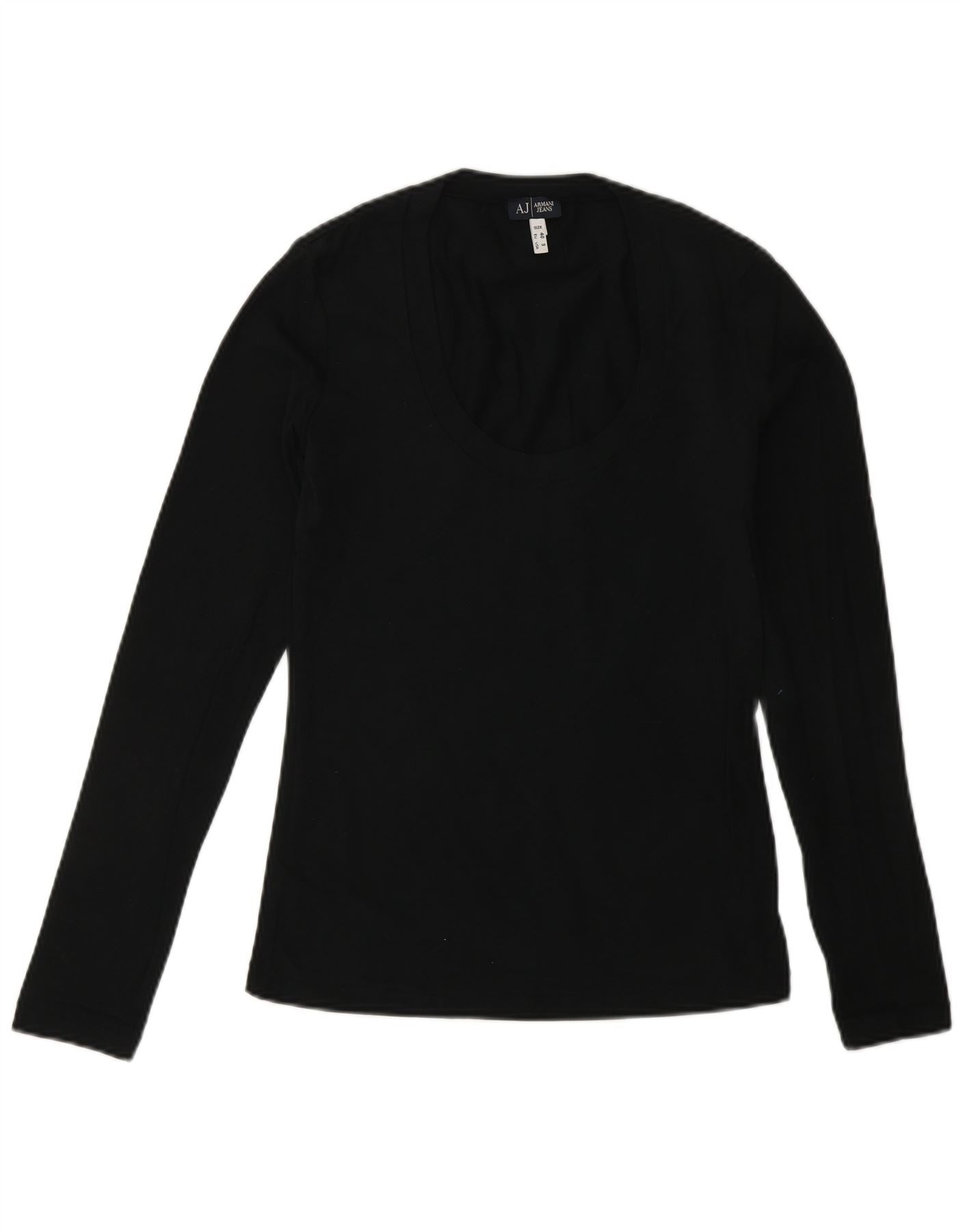ARMANI JEANS Top Mujer Manga Larga UK 10 Pequeño Algodón Negro