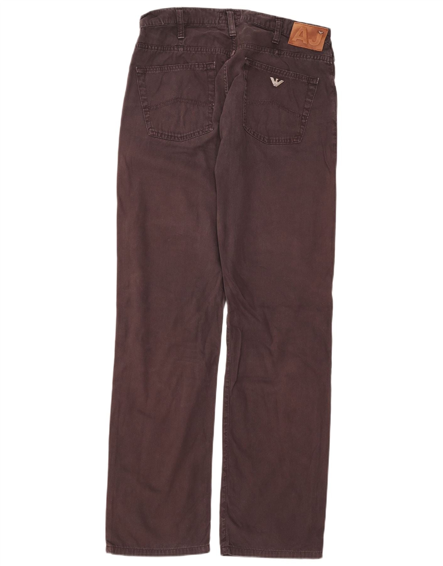 ARMANI Mens Straight Casual Trousers W33 L34 Brown Chevron Cotton