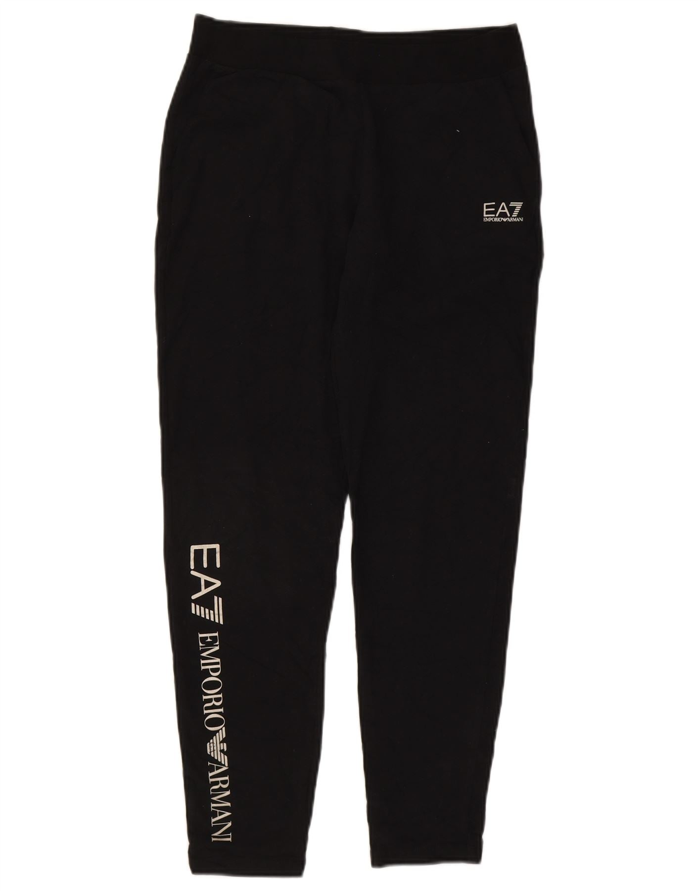ARMANI Womens Graphic Tracksuit Trousers UK 14 Medium Black Cotton Sports
