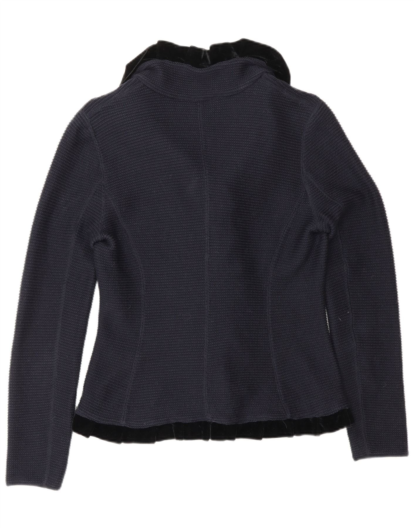ARMANI Suéter tipo cárdigan con volantes en la parte delantera para mujer IT 42 Azul marino mediano