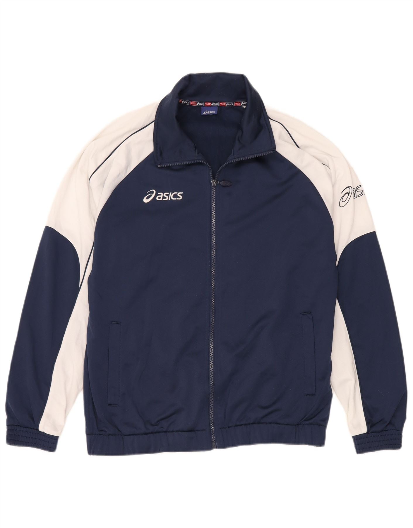 ASICS Chaqueta de chándal con gráfico para hombre, color azul marino medio, color block