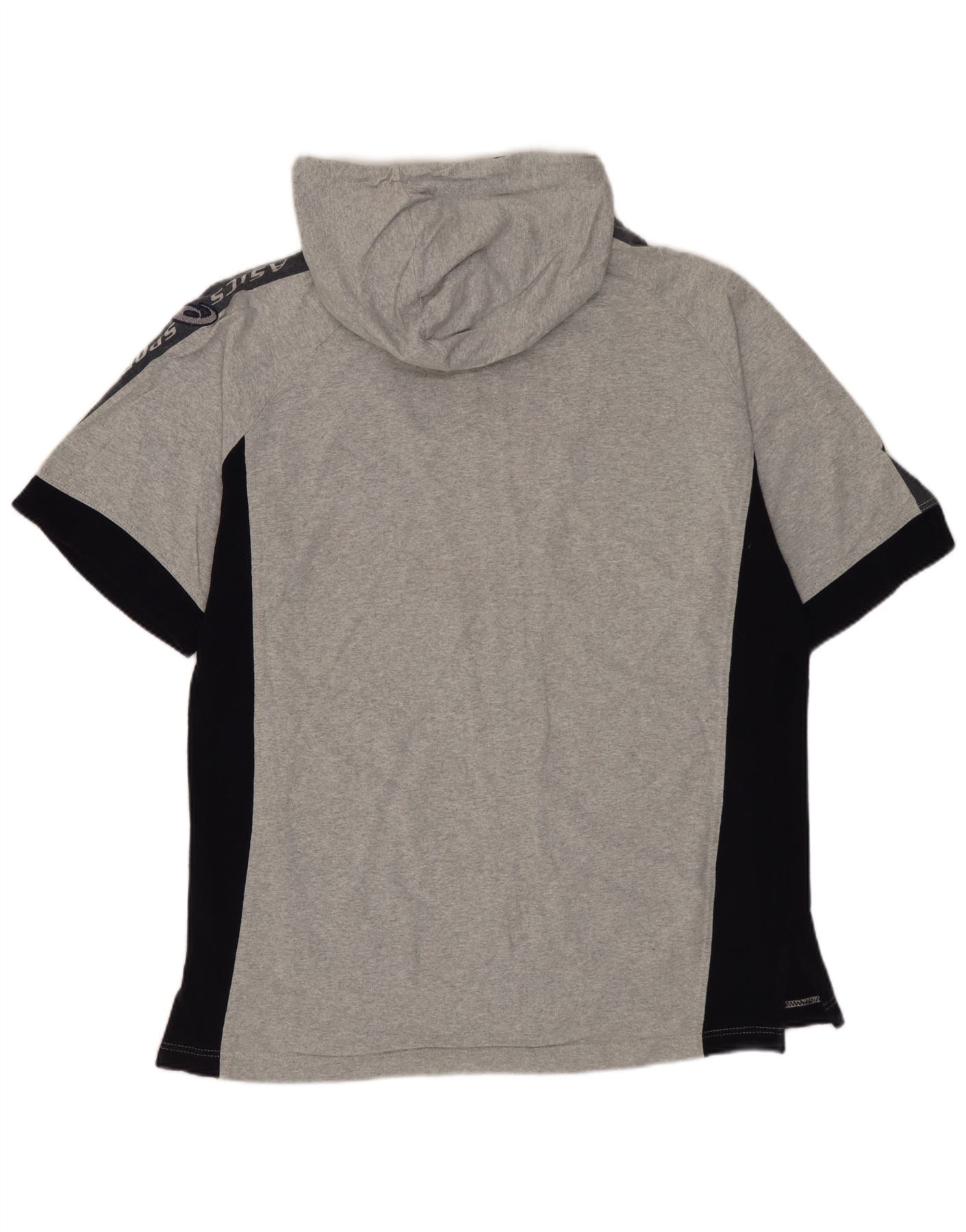ASICS - Sudadera con capucha y cremallera de manga corta para hombre, talla pequeña, algodón gris color block
