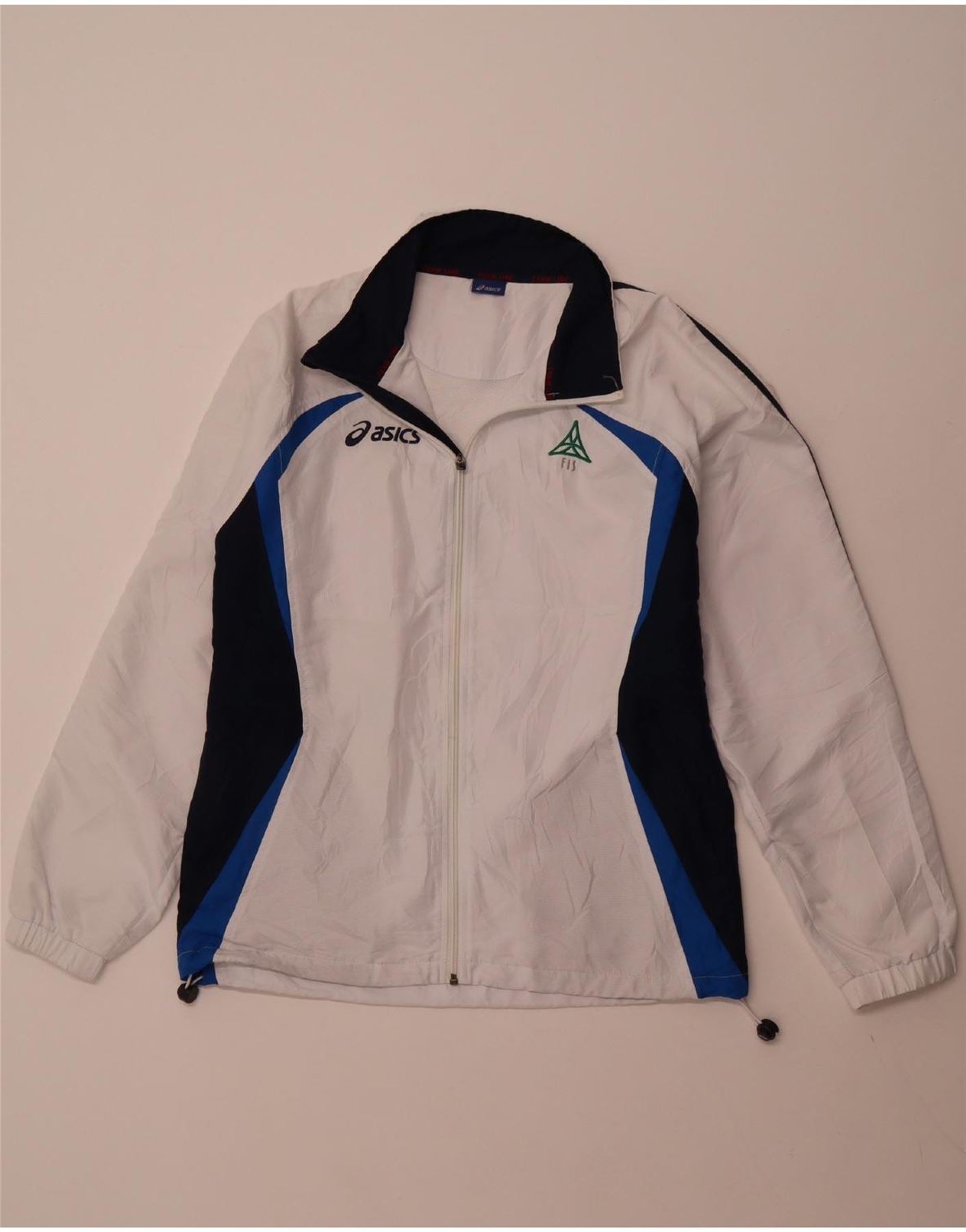 Home > Ropa Asics Vintage > Ropa Asics vintage para hombre > Tops de chándal > ASICS Chaqueta superior de chándal para hombre Poliéster con bloques de color blanco grande