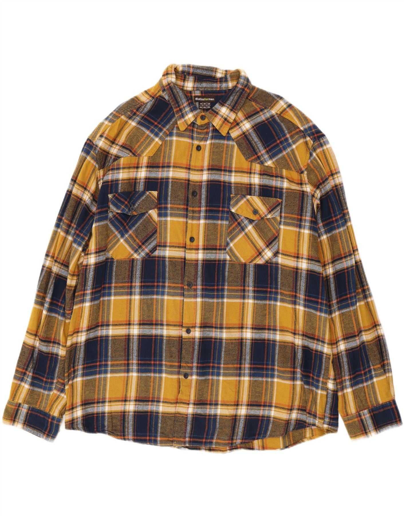 ATLAS FOR MEN Camisa de franela para hombre 3XL Algodón a cuadros amarillos