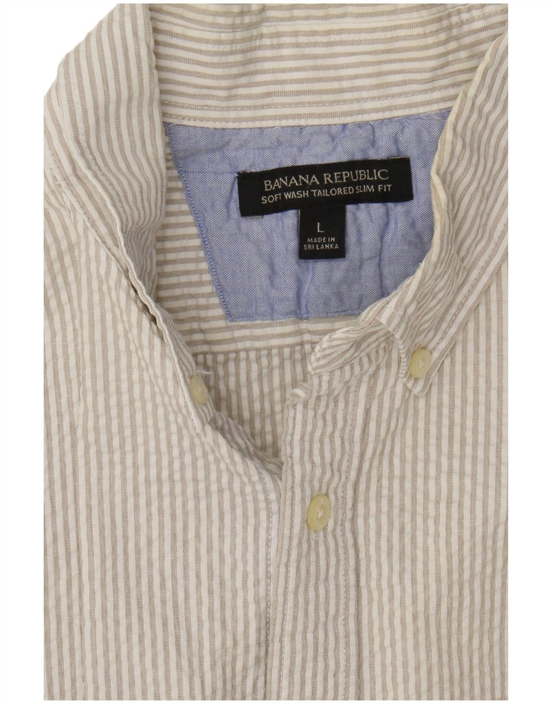 BANANA REPUBLIC Mens Tailored Slim Fit Shirt Large Grey Pinstripe Cotton