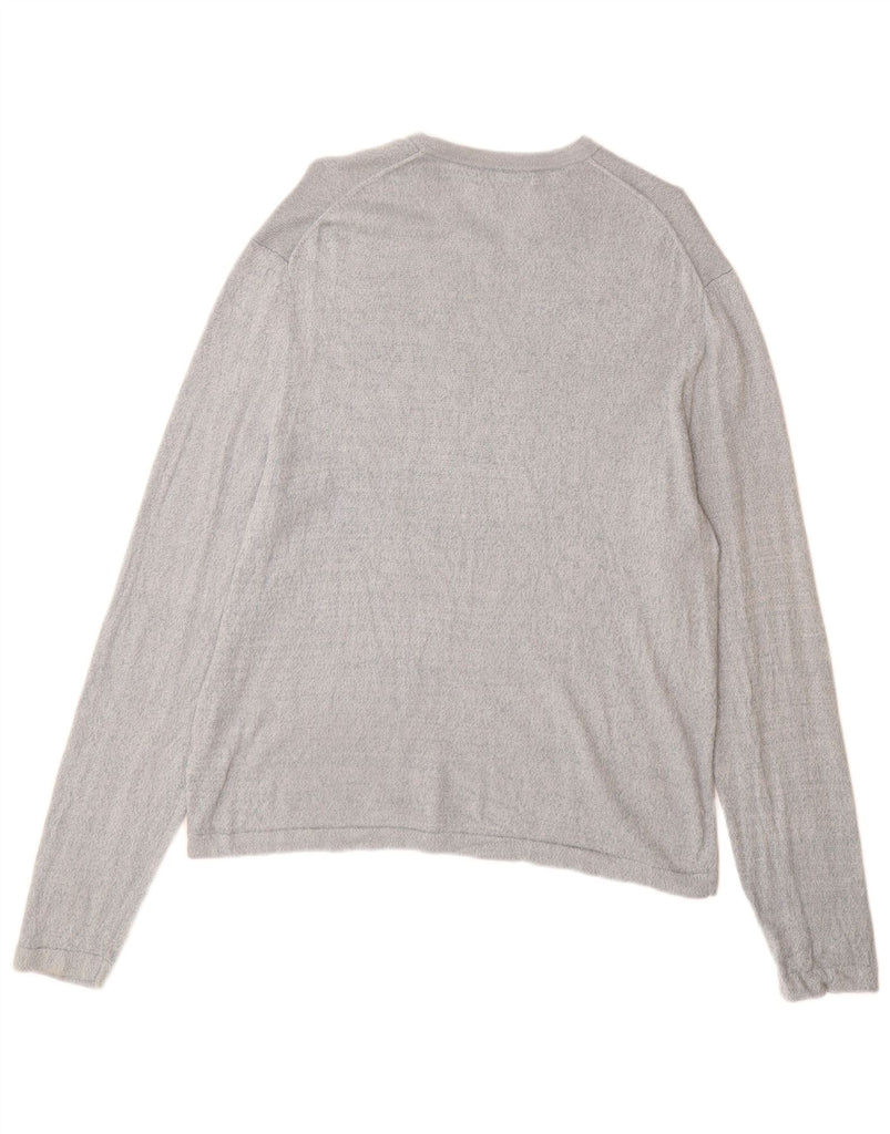 BANANA REPUBLIC Mens V-Neck Jumper Sweater Large Blue Flecked Silk