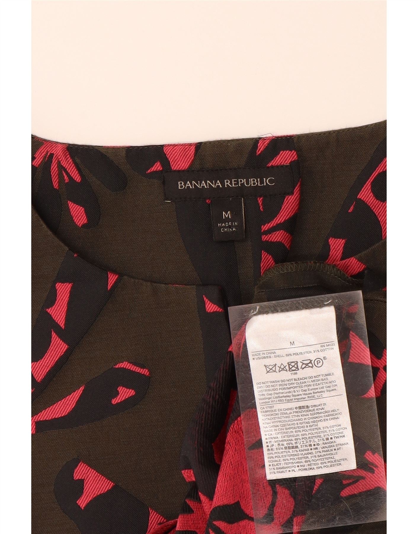 Home > Ropa vintage de la República Bananera > De las mujeres > BANANA REPUBLIC Blusa con estampado abstracto para mujer Reino Unido 44 Caqui medio