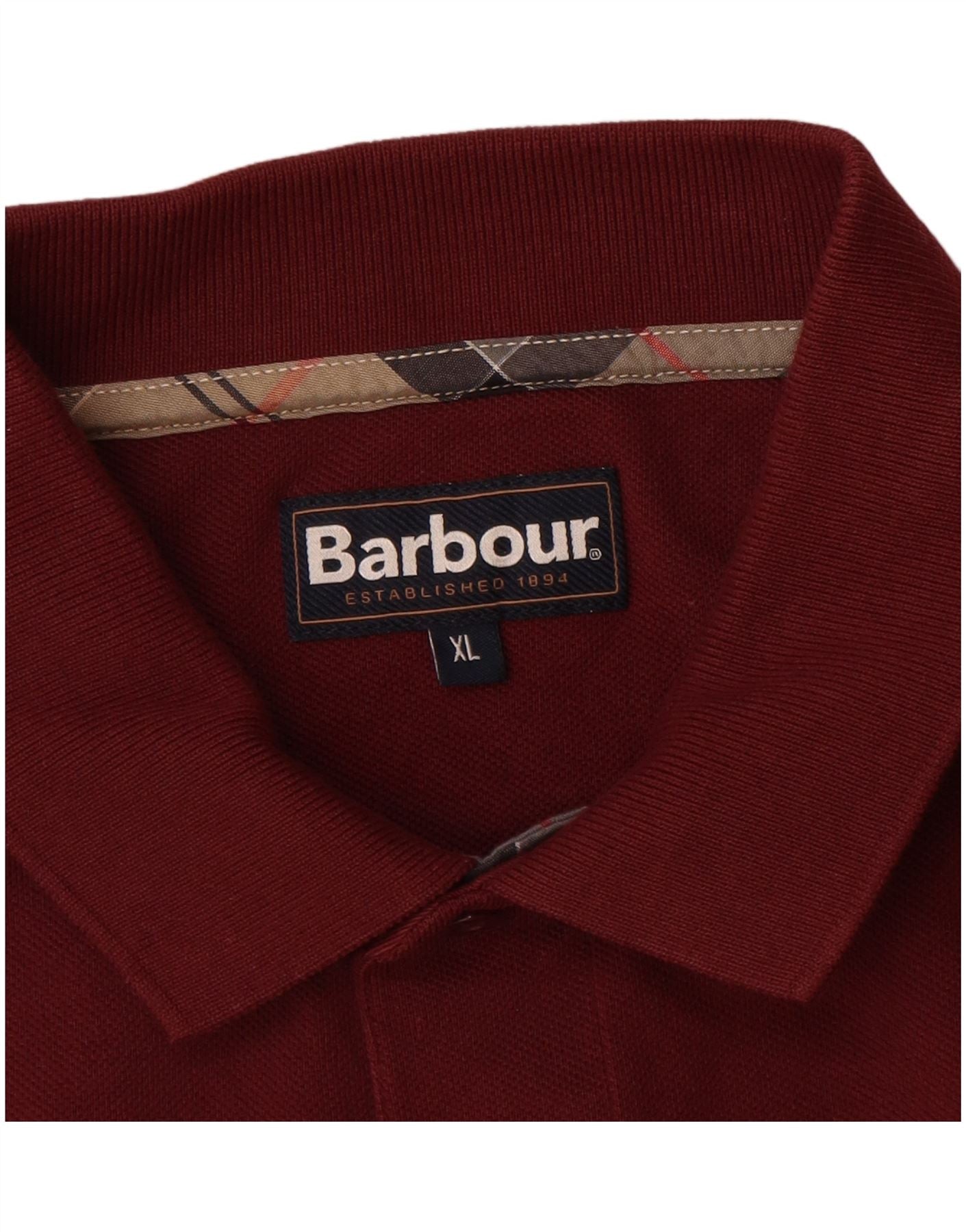 BARBOUR Polo Manga Larga Hombre XL Algodón Burdeos