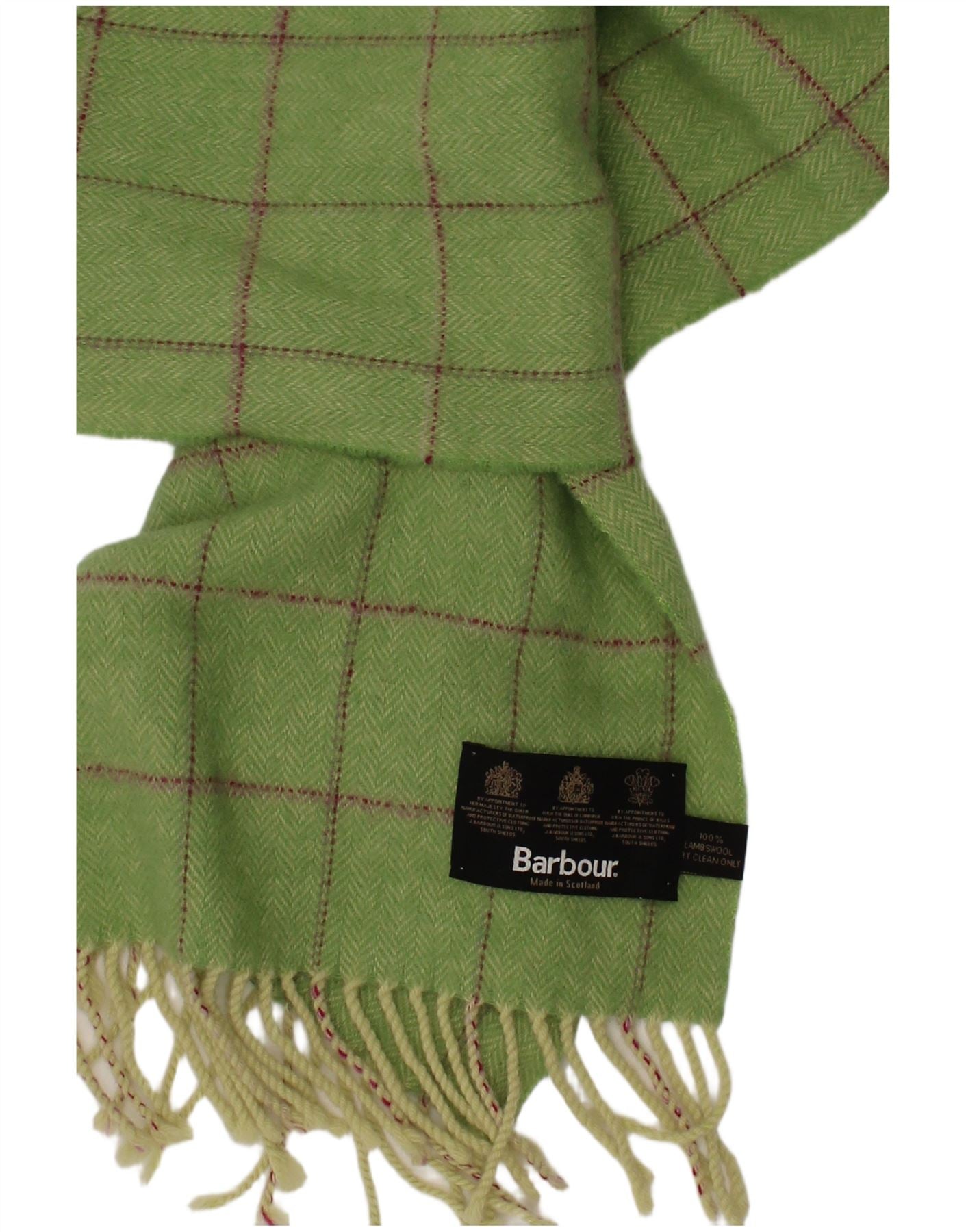 BARBOUR Mens Rectangle Scarf One Size Green Check Lambswool Classic