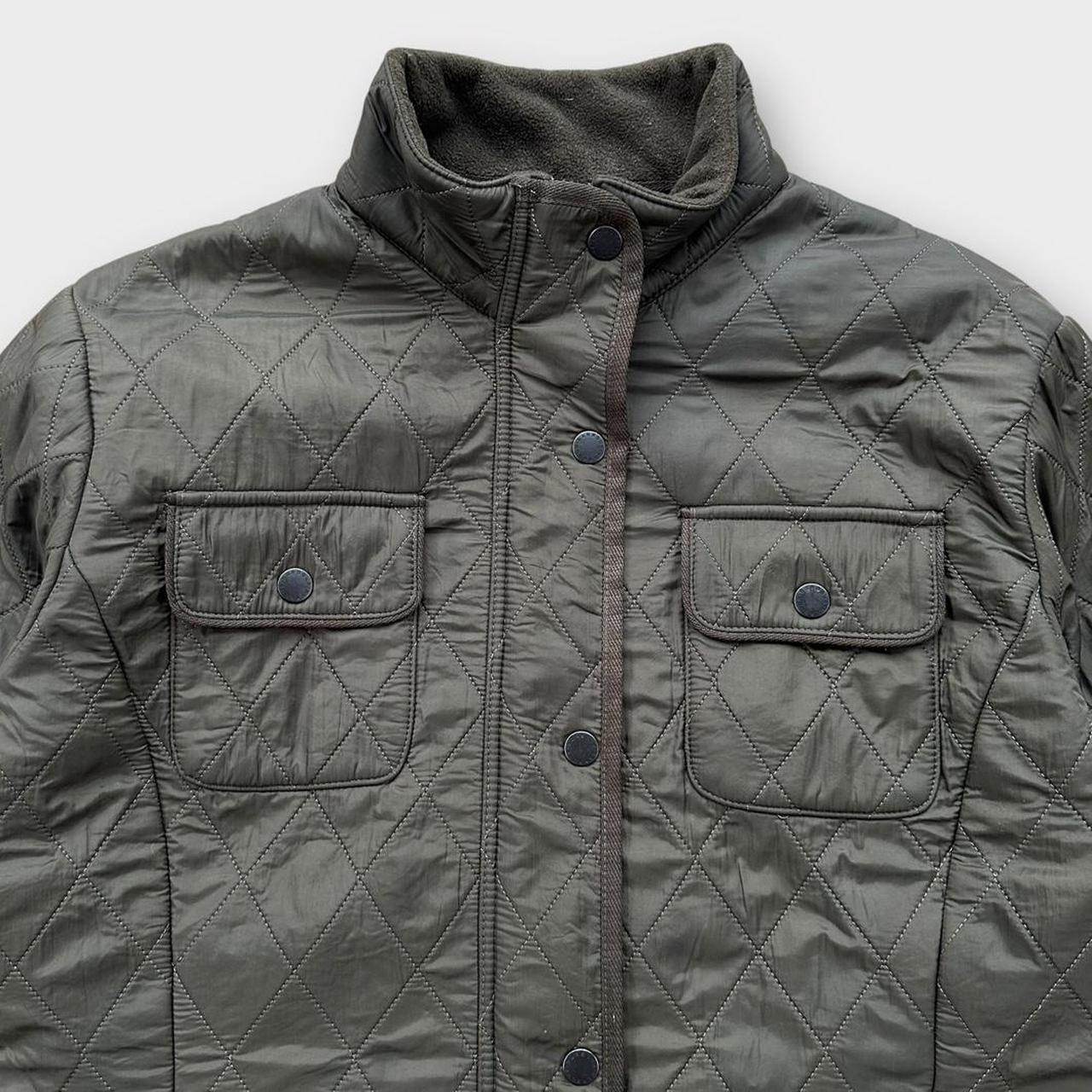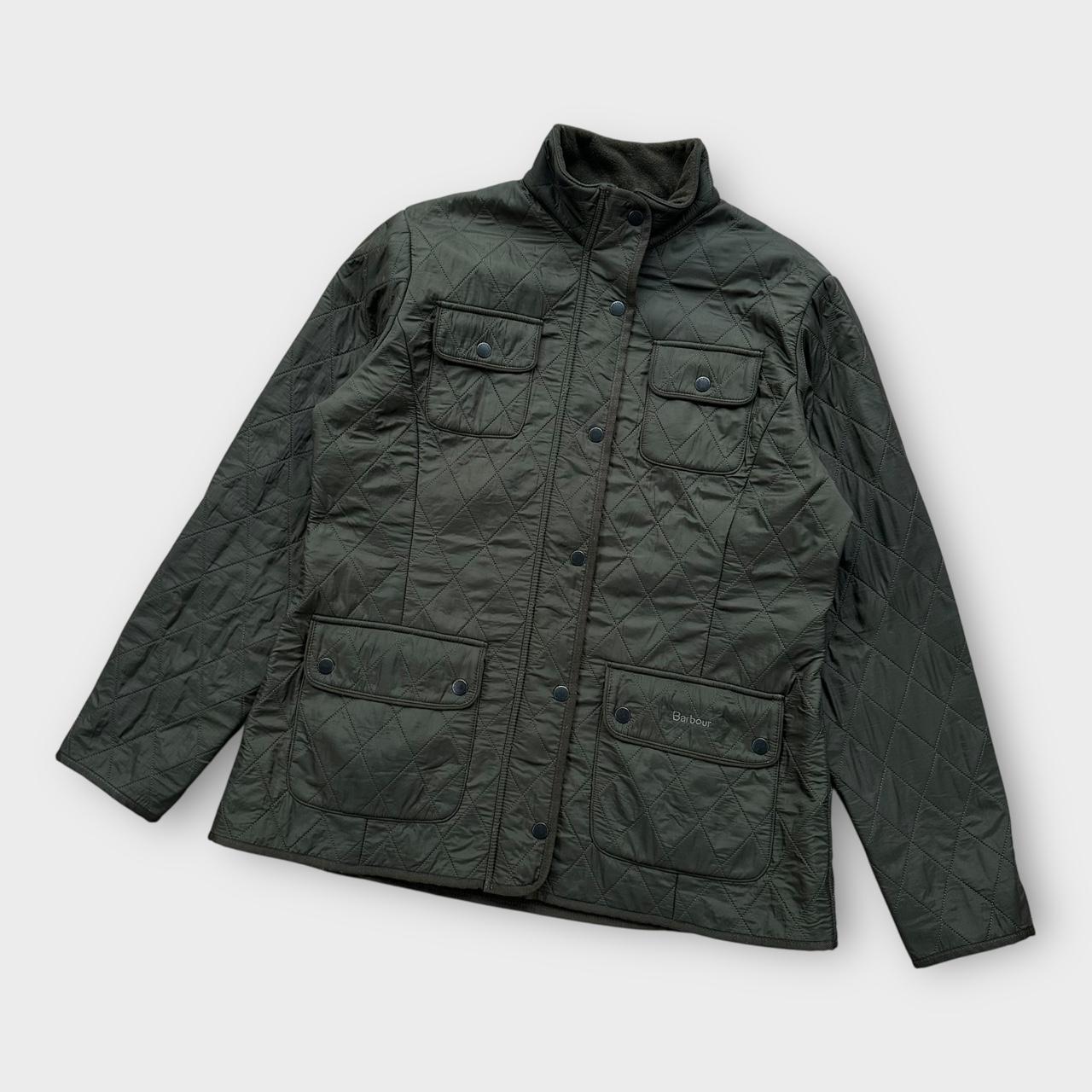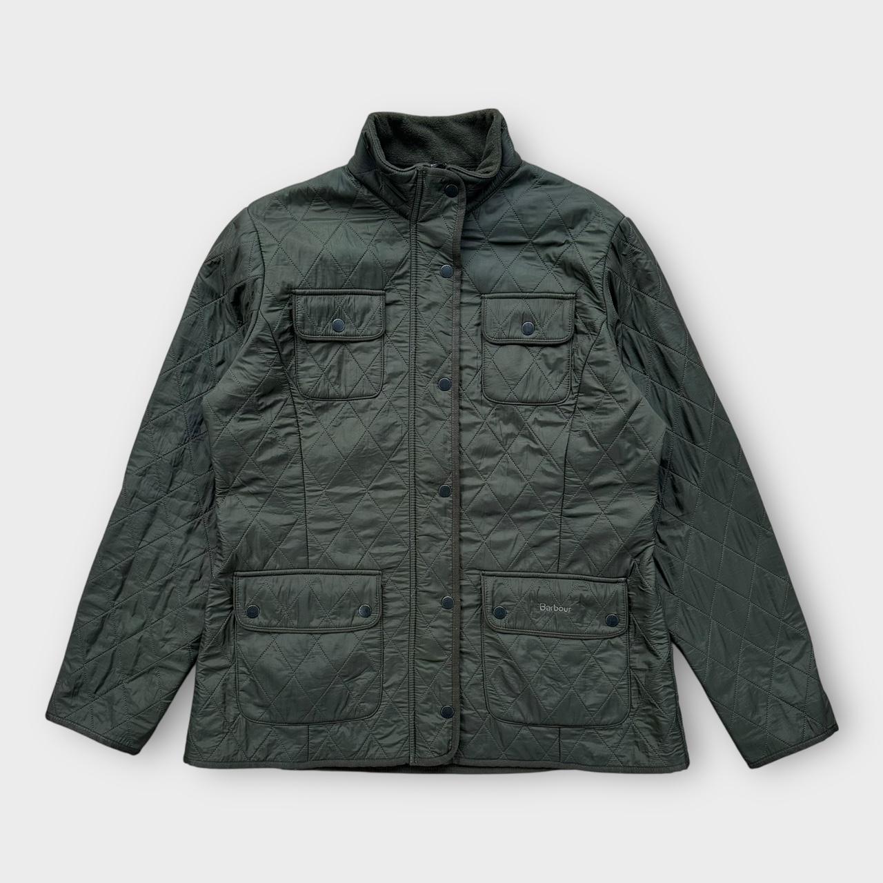 Moderna chaqueta Barbour ligera y acolchada con cremallera para mujer en color verde, 4 bolsillos y logo bordado en la parte delantera