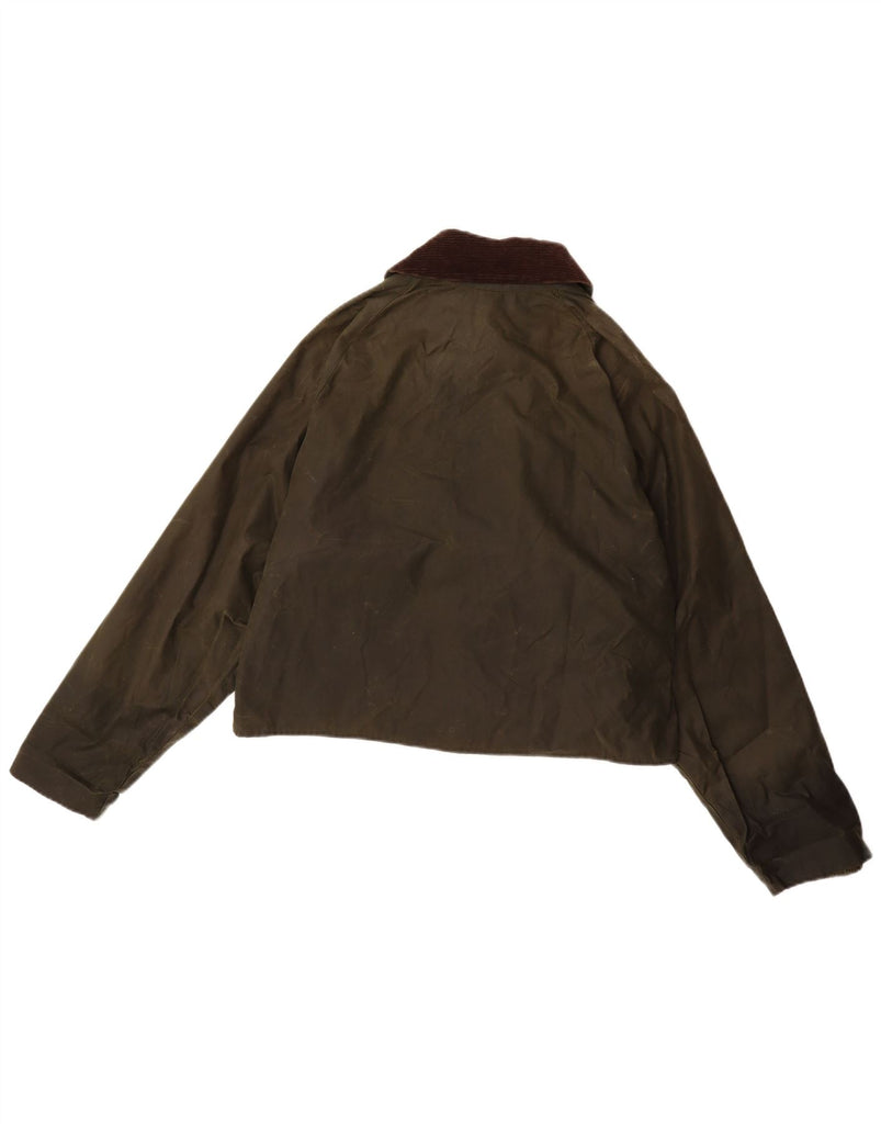 BARBOUR Womens Crop Waxed Cotton Jacket UK 14 Medium Khaki Cotton