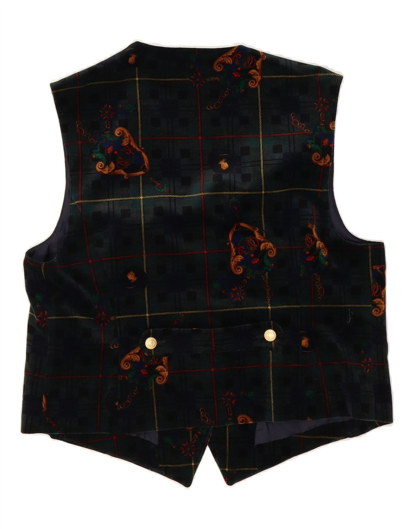 - AI Description: This pre-owned Basler waistcoat is a classic addition to any gentleman's wardrobe. Crafted from luxurious green velvet with a plaid pattern, this regular fit waistcoat features a V-neckline and sleeveless design. It fastens with buttons and includes practical pockets. While in excellent condition, there are minor defects to note: loose stitching on the buttons and minor discoloration on the inner lining. Label size 44.