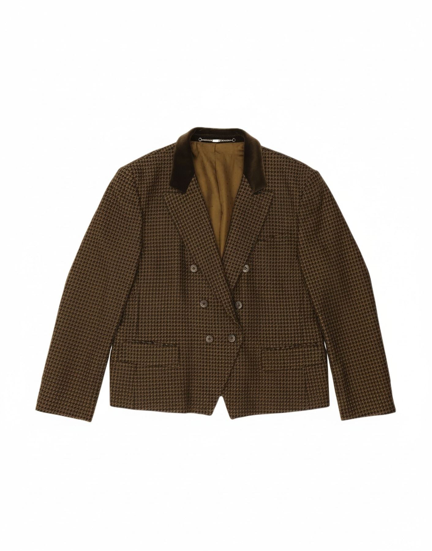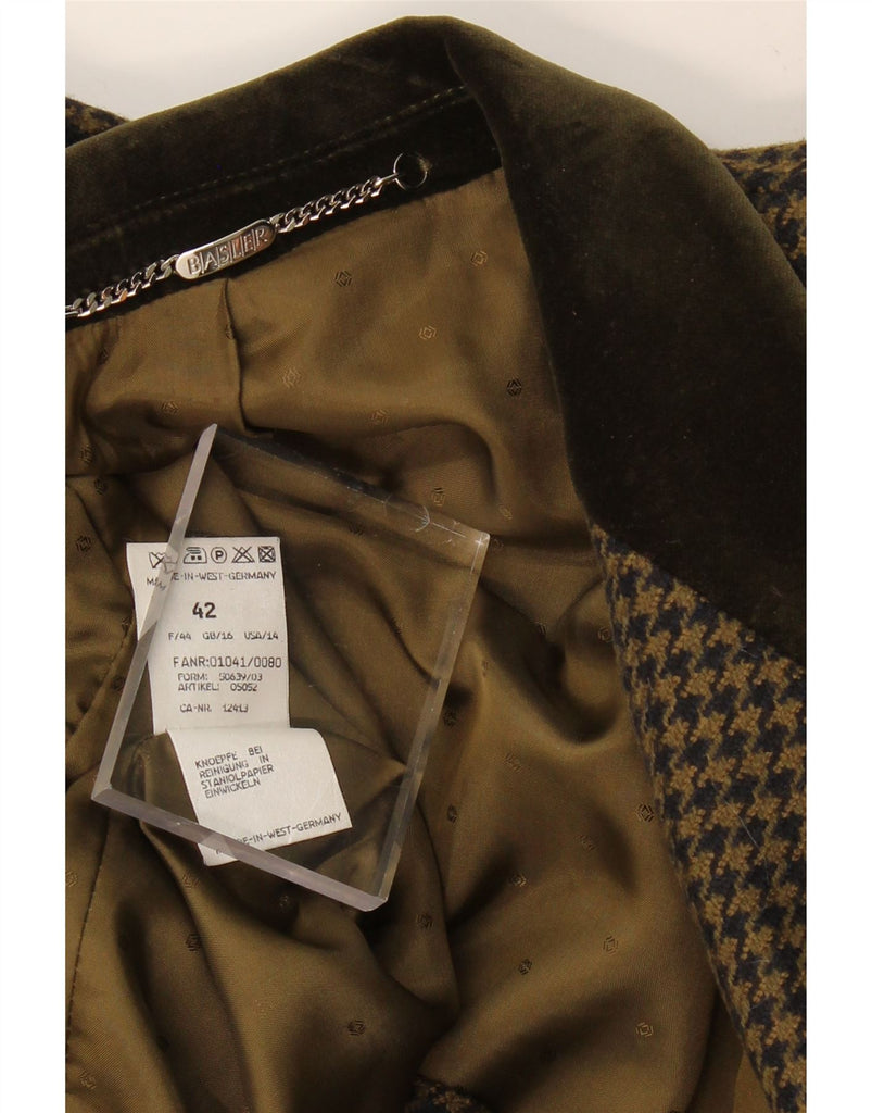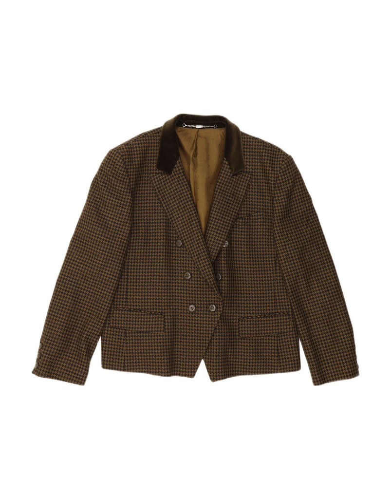 BASLER Womens Double Breasted Blazer Jacket EU 42 Large Khaki Houndstooth