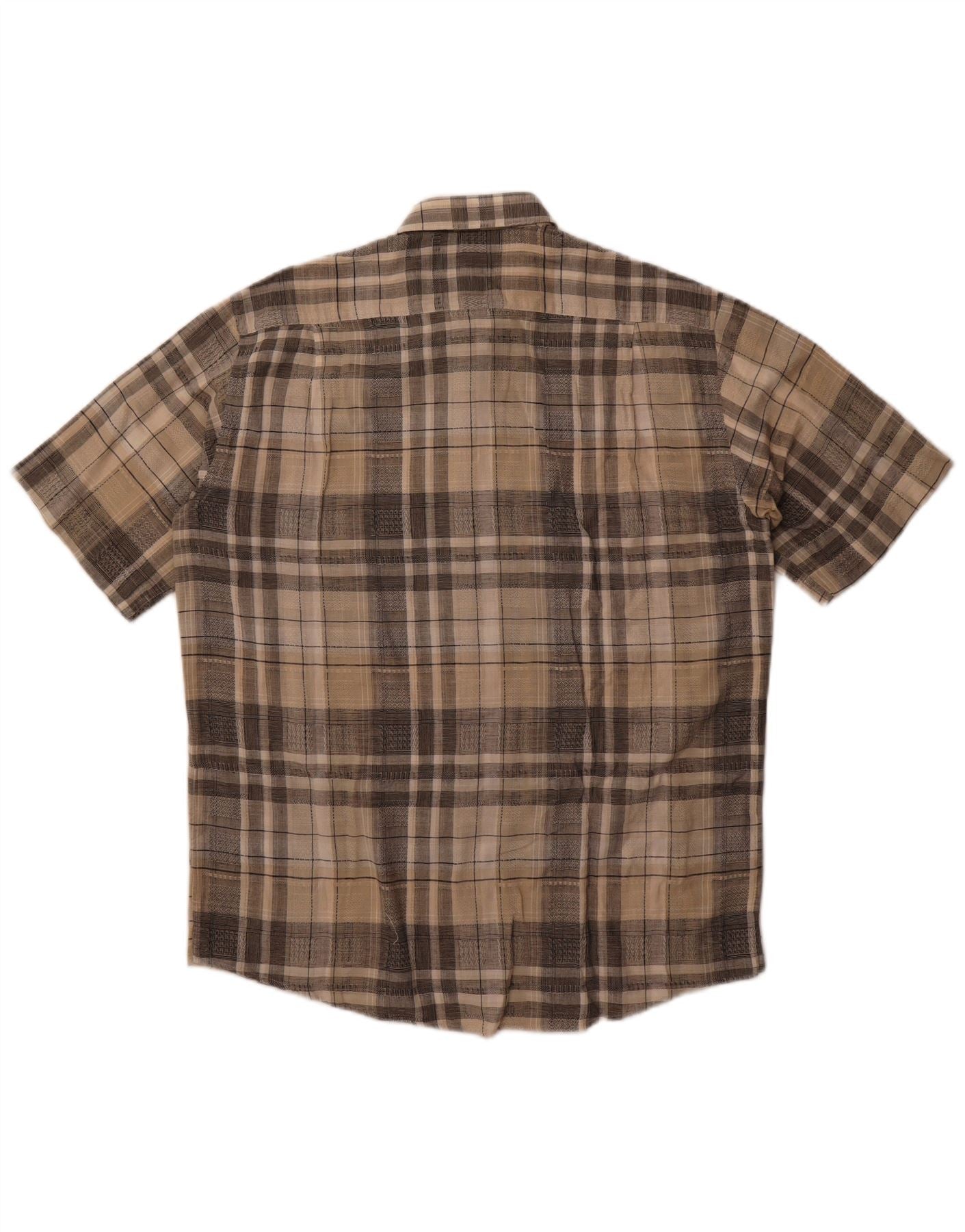 Belmonte Camisa Manga Corta Hombre Talla 42 Grande Beige Cuadros Algodón