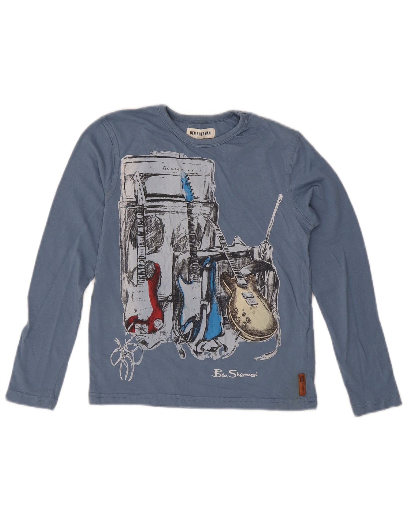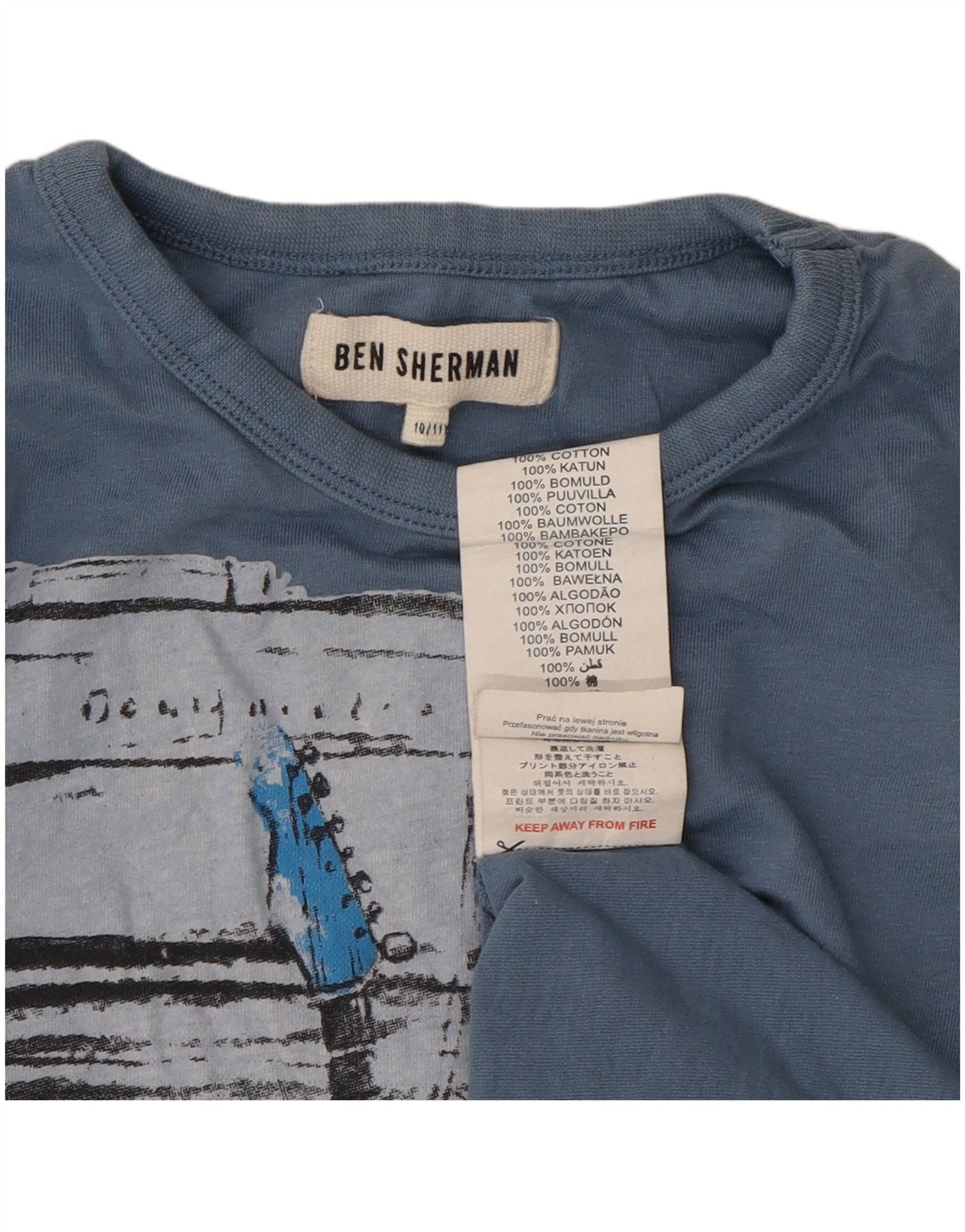 BEN SHERMAN Boys Graphic Top Long Sleeve 10-11 Years Blue Cotton