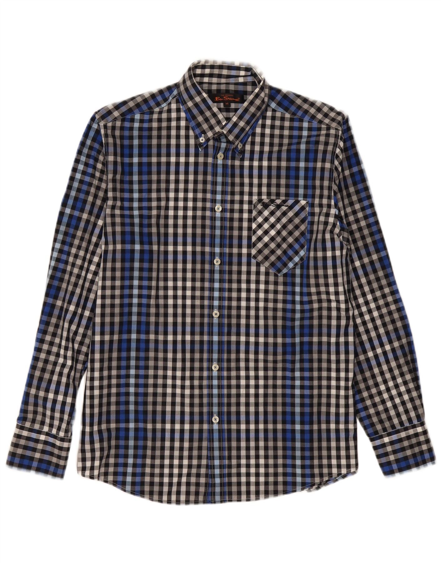 BEN SHERMAN Camisa para hombre Algodón a cuadros azul marino mediano