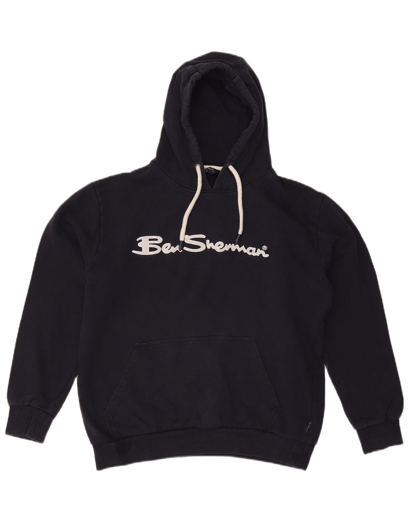 Home > Ropa vintage de Ben Sherman > De las mujeres > BEN SHERMAN Jersey con capucha gráfico extragrande para mujer Reino Unido 40 Grande Azul marino