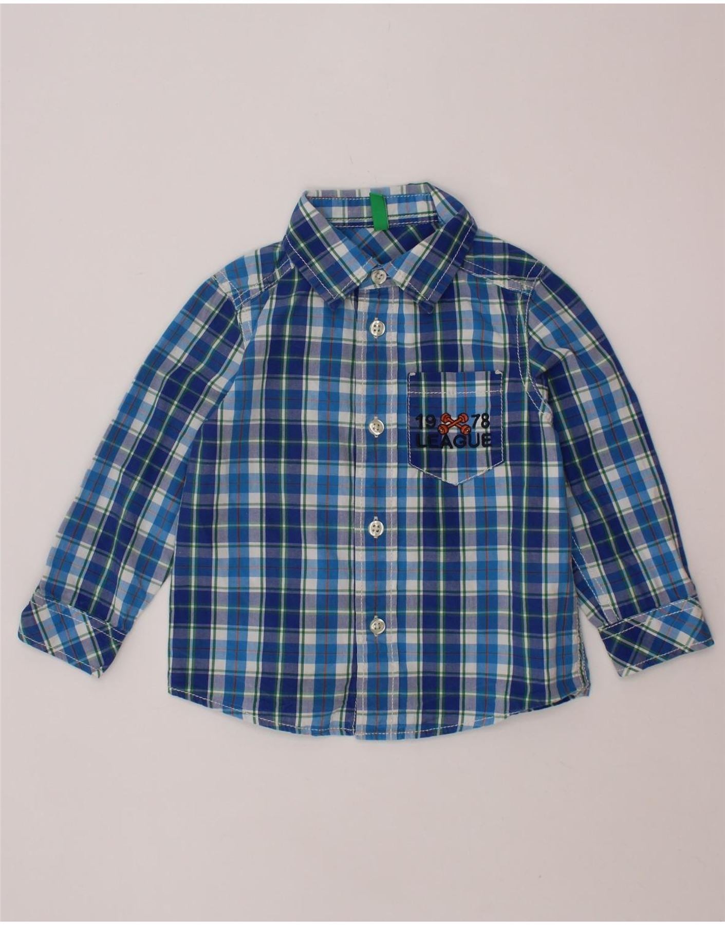BENETTON Camisa Bebé Niño 18-24 Meses Azul Cuadros Algodón