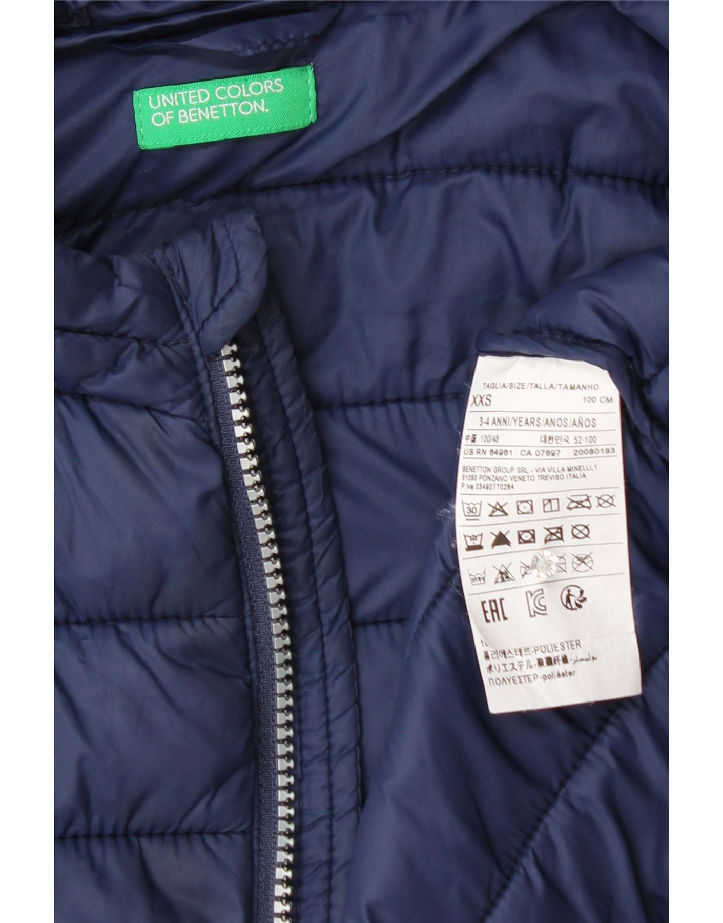 BENETTON Boys Hooded Padded Gilet 3-4 Years 2XS Navy Blue Polyamide