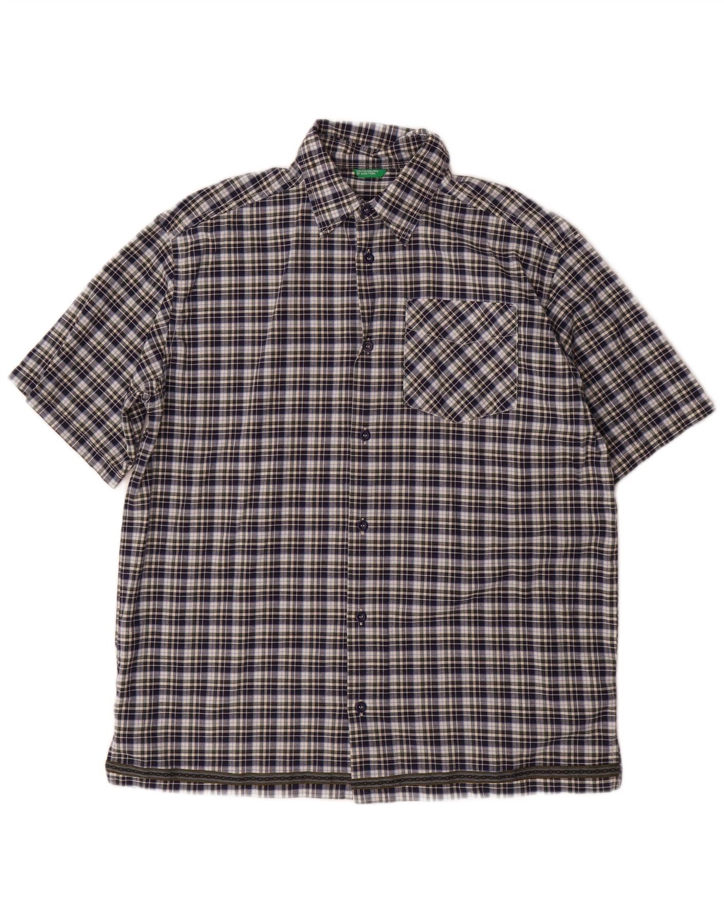 BENETTON Camisa Manga Corta Niño 11-12 Años XL Azul Marino Cuadros Algodón