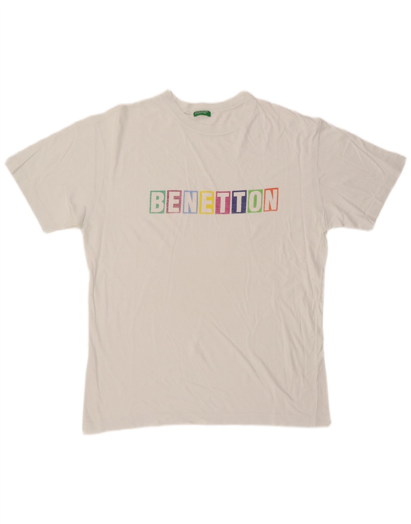 - Descripción de IA: Esta camiseta con gráfico para hombre de United Colors Of Benetton está confeccionada con un suave tejido de punto blanco. Presenta un clásico cuello redondo y manga corta. El diseño del jersey ofrece un ajuste regular y cómodo. Un logotipo de BENETTON vibrante y colorido se muestra de manera destacada en el frente, agregando un acento distintivo. Esta pieza combina comodidad con un estilo atrevido y característico.