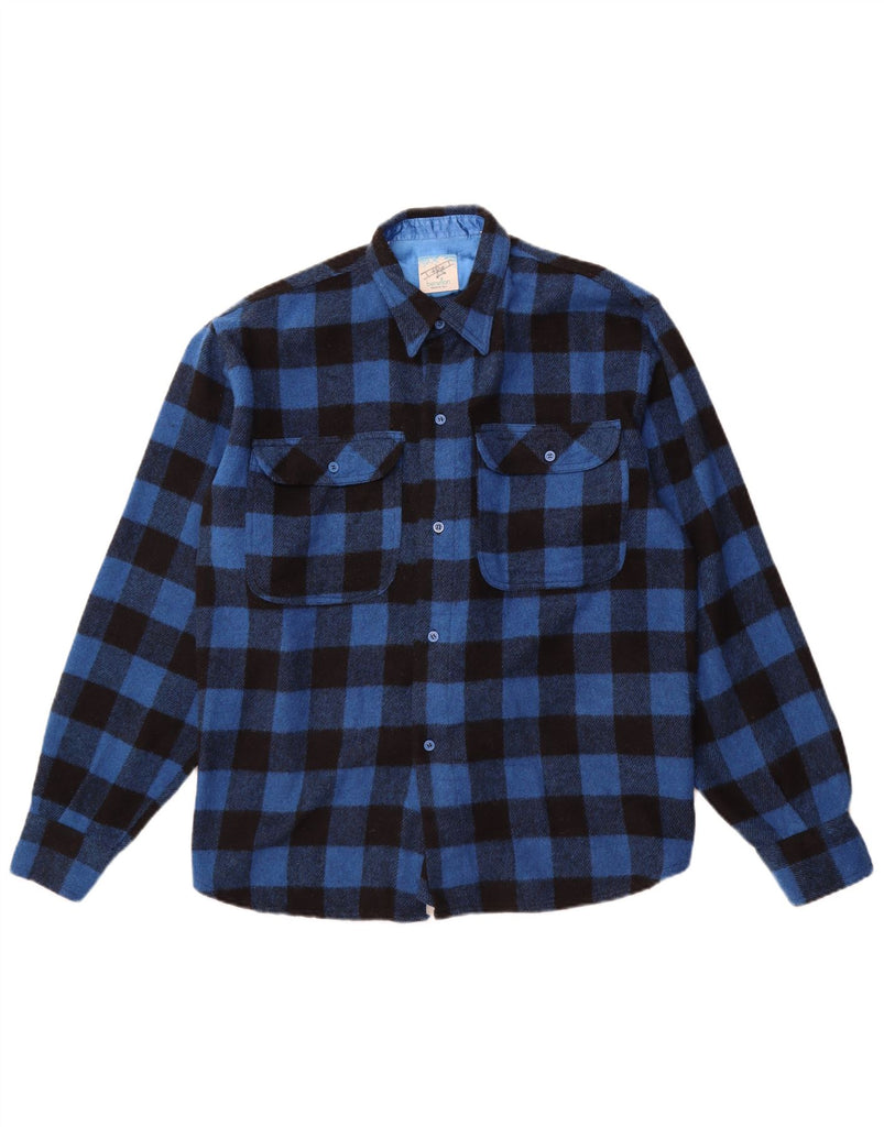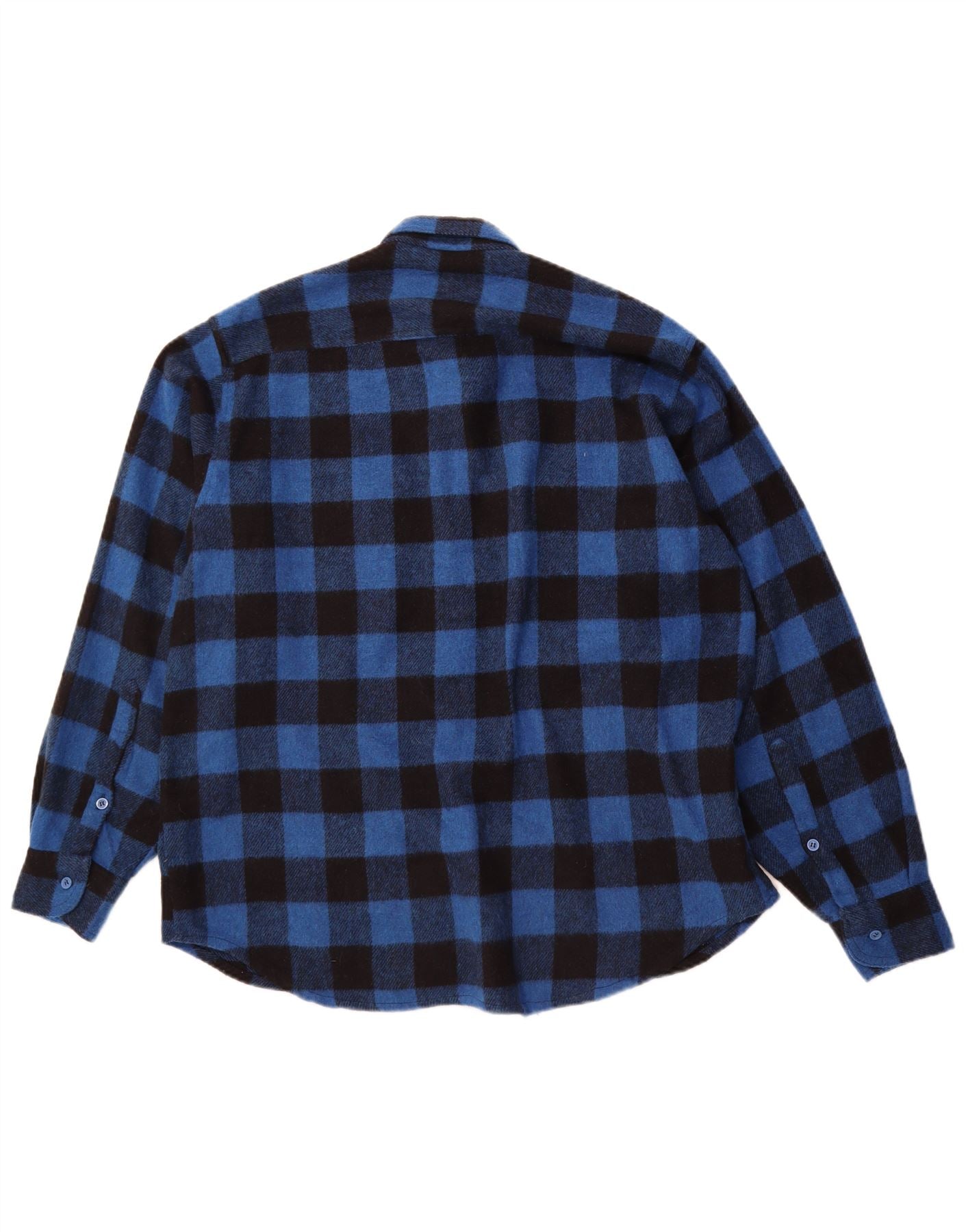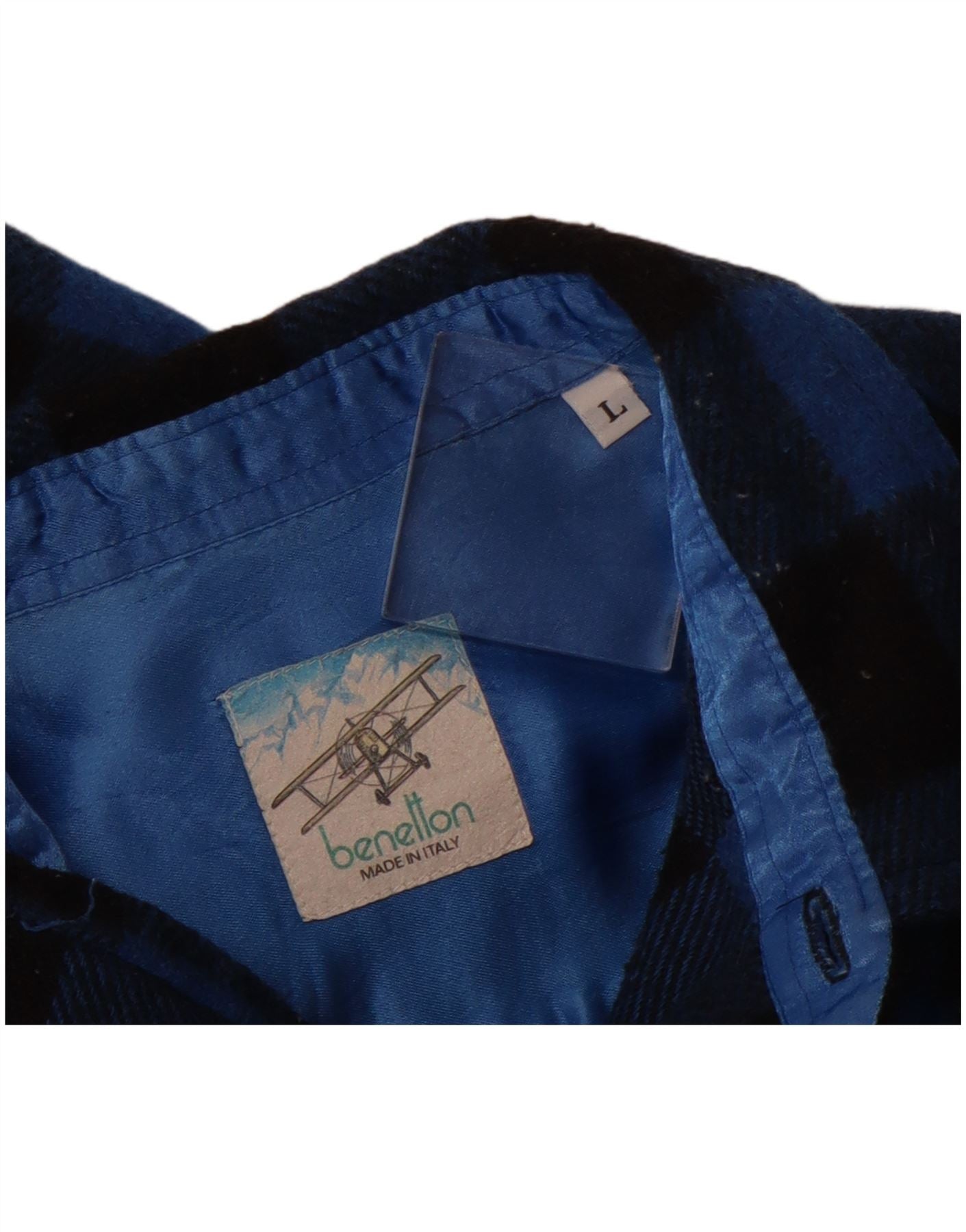 BENETTON Camisa de franela de leñador para hombre, talla grande, color azul a cuadros