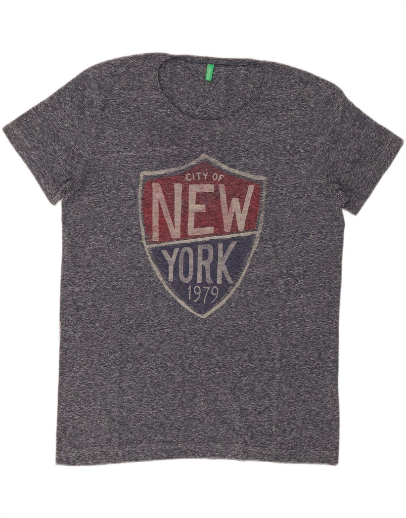 BENETTON Mens New York Graphic T-Shirt Top Large Grey Flecked Polyester