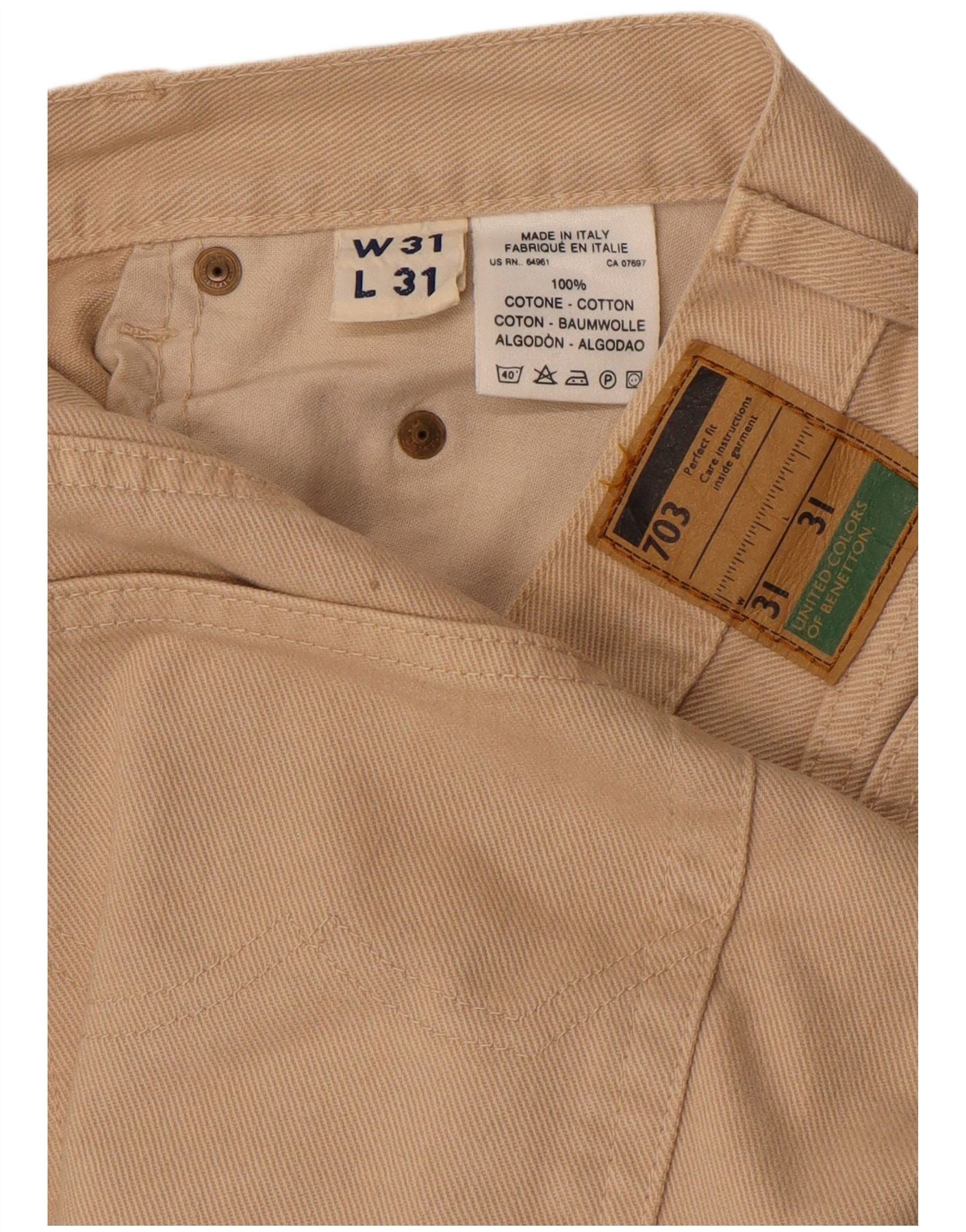 BENETTON Mens Perfect Fit Straight Casual Trousers W31 L31 Beige Cotton