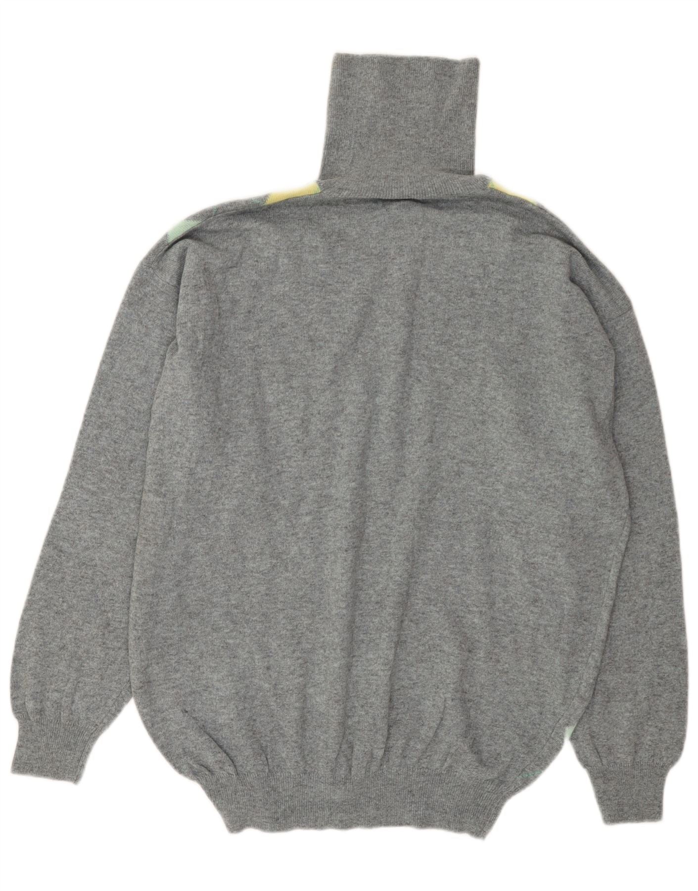 Home > Ropa Benetton Vintage > de los hombres > BENETTON Jersey con cuello vuelto para hombre, talla grande, gris Argyle/lana de diamante
