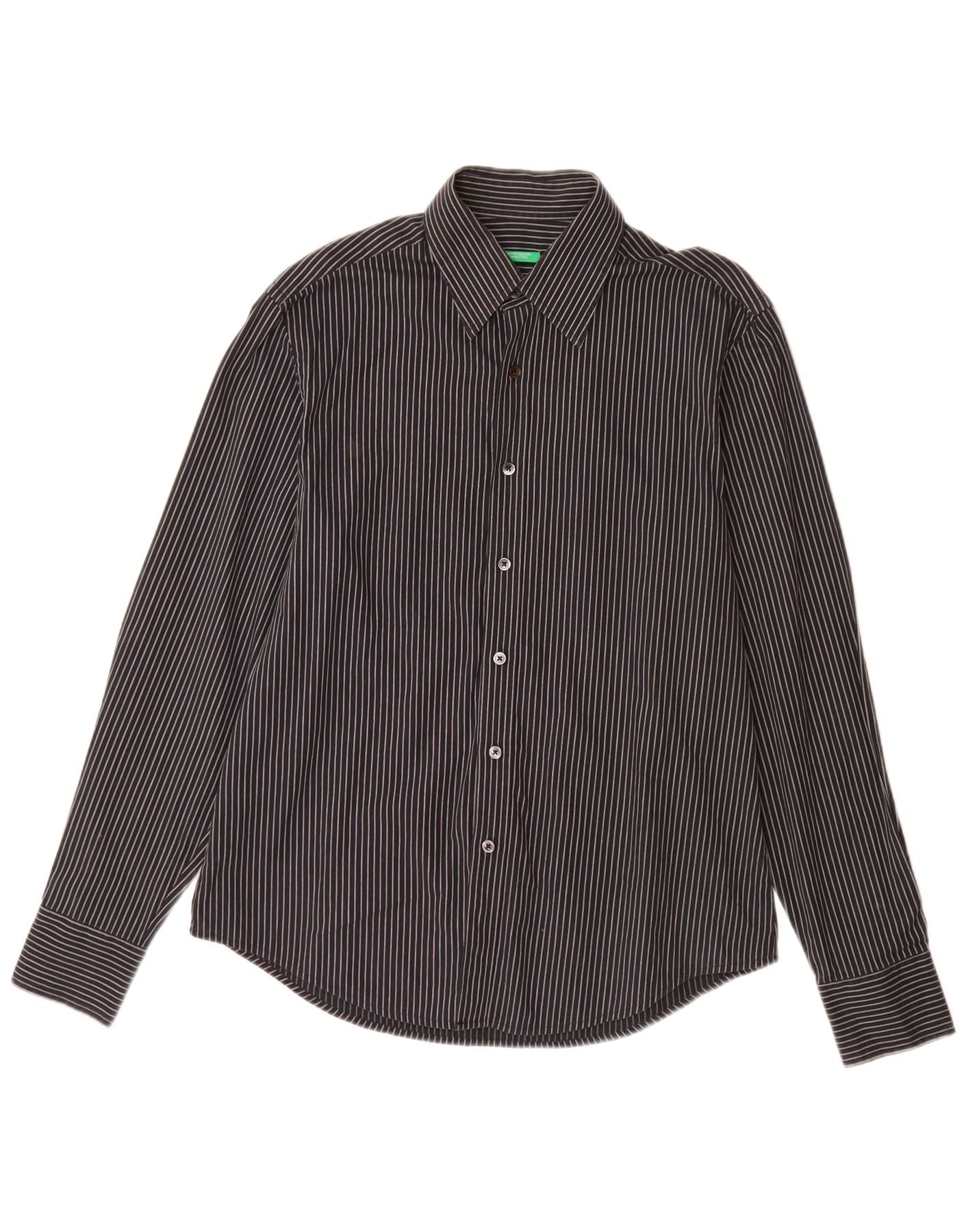 Camisa BENETTON Hombre Mediana Algodón Rayas Negras