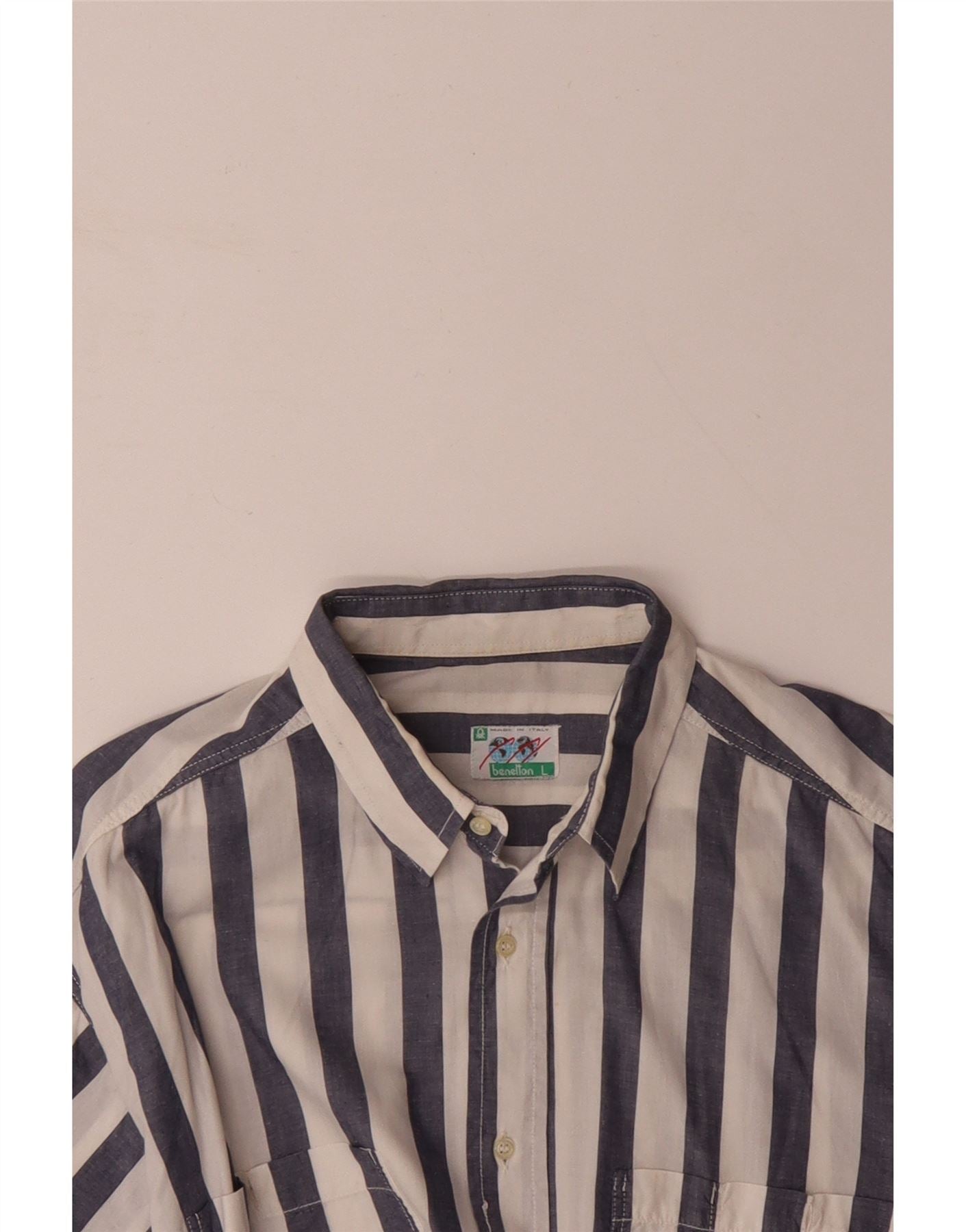 Home > Ropa Benetton Vintage > de los hombres > BENETTON Camisa de manga corta para hombre grande azul marino a rayas