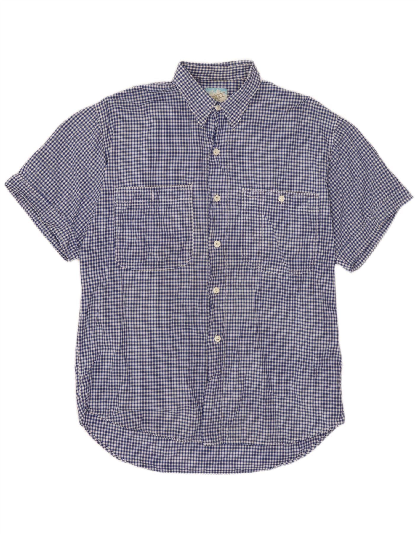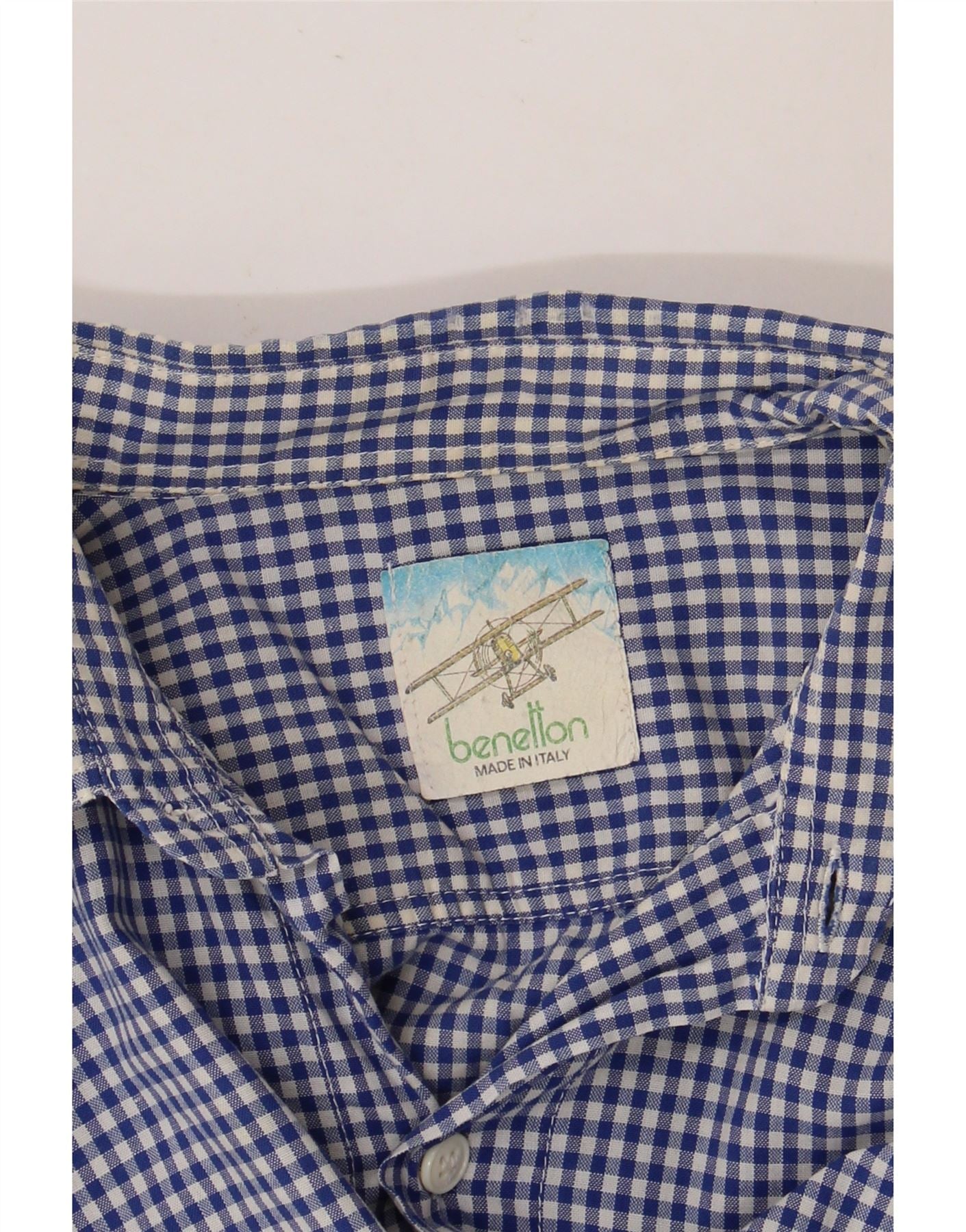 BENETTON Camisa Manga Corta Hombre XL Vichy Azul