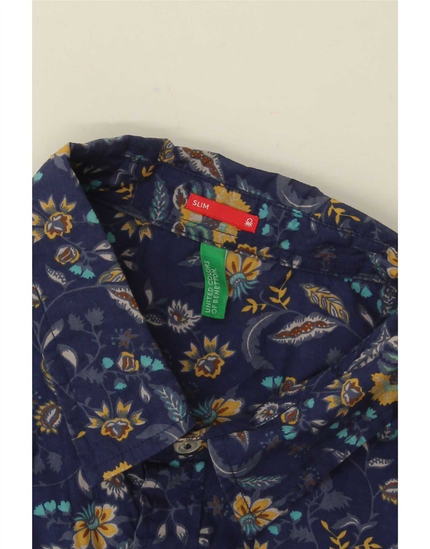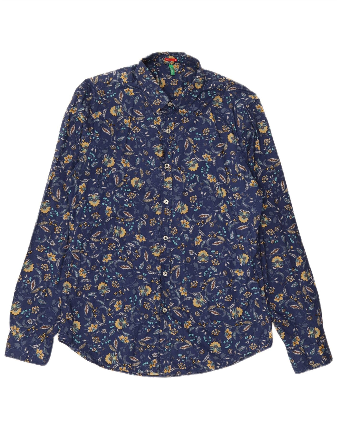 Home > Ropa Benetton Vintage > de los hombres > BENETTON Camisa ajustada para hombre Azul marino medio Floral