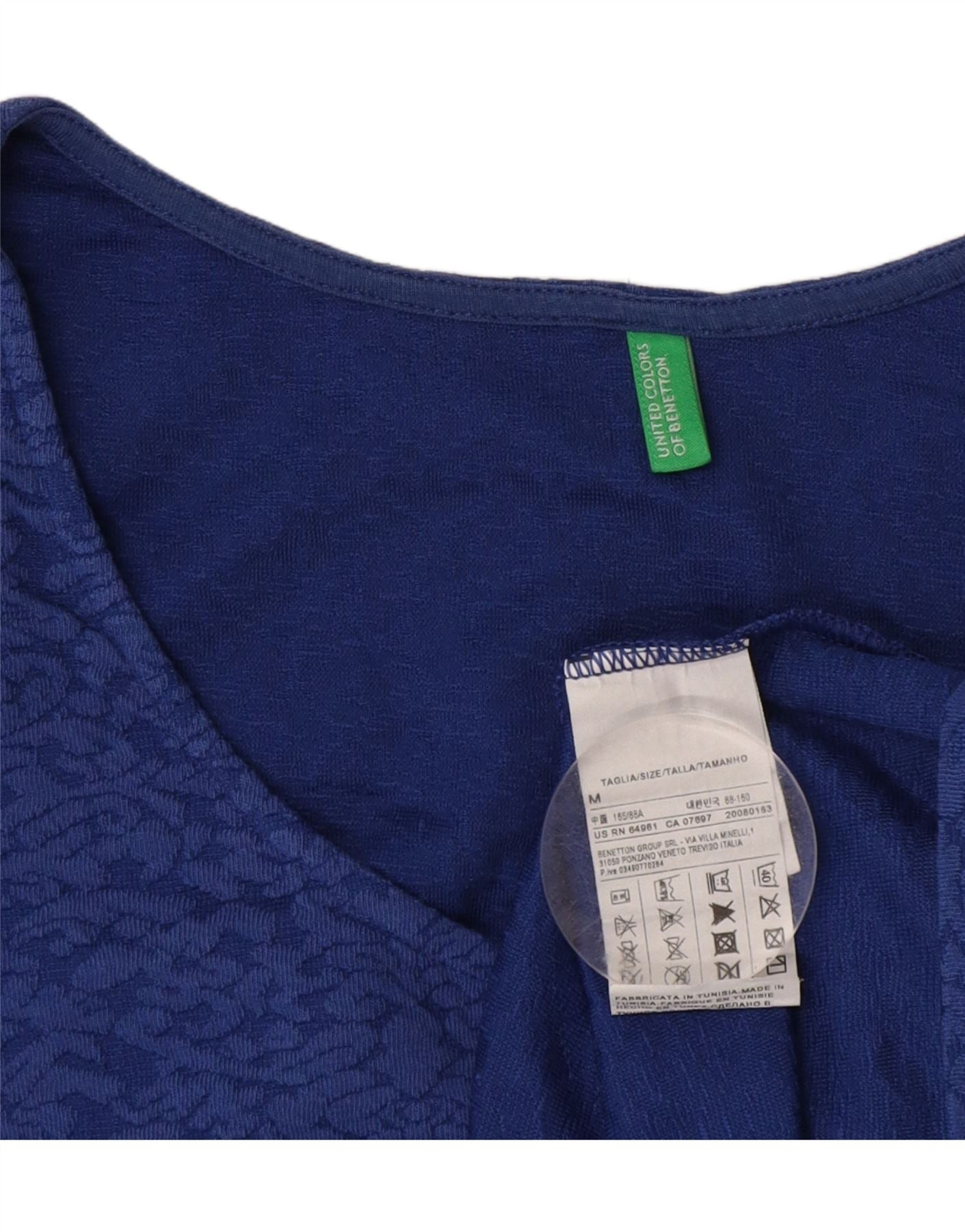 BENETTON Blusa para Mujer Top UK 40 Azul Medio Algodón Paisley