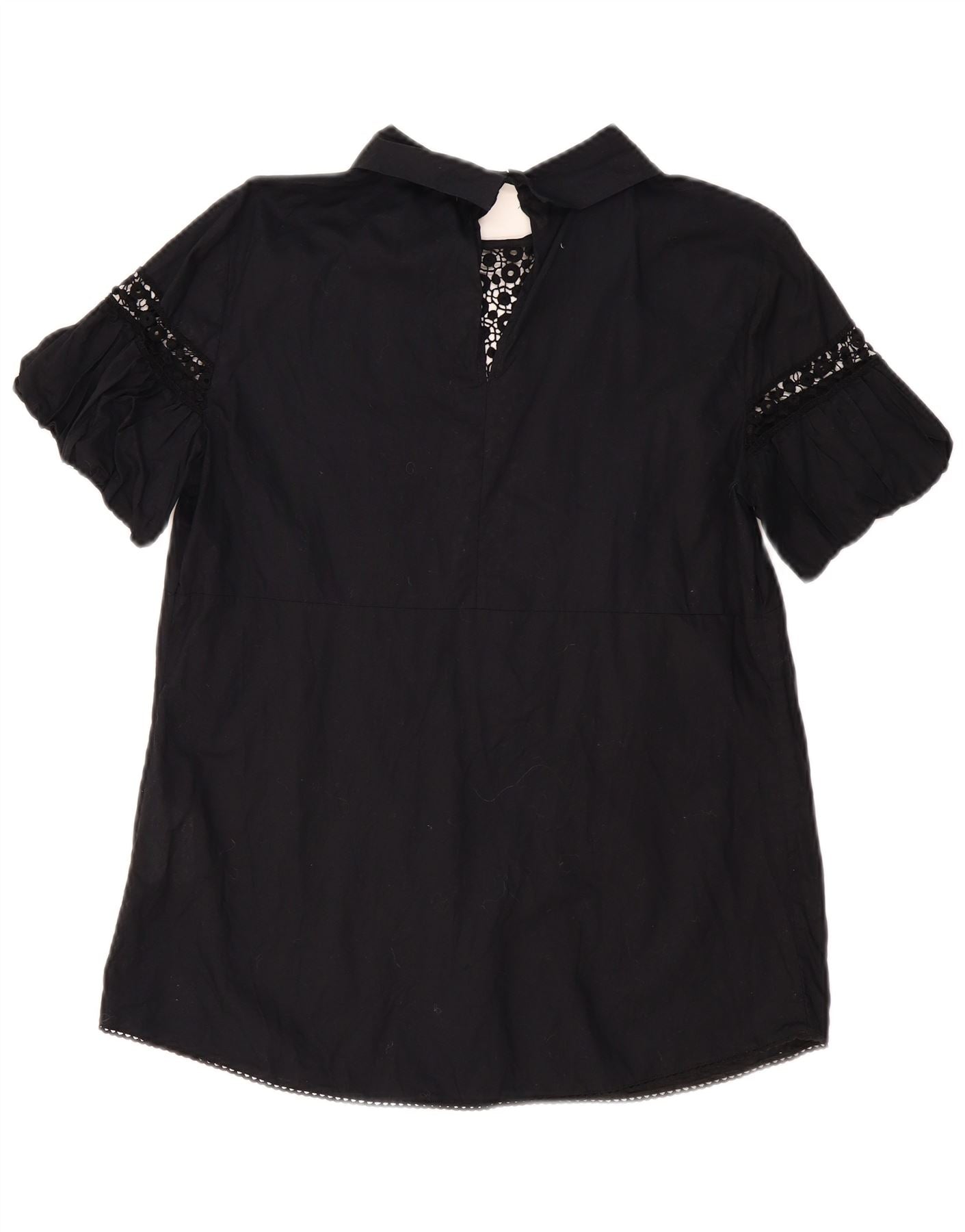 BENETTON Blusa para mujer Top UK 44 Grande Algodón floral negro
