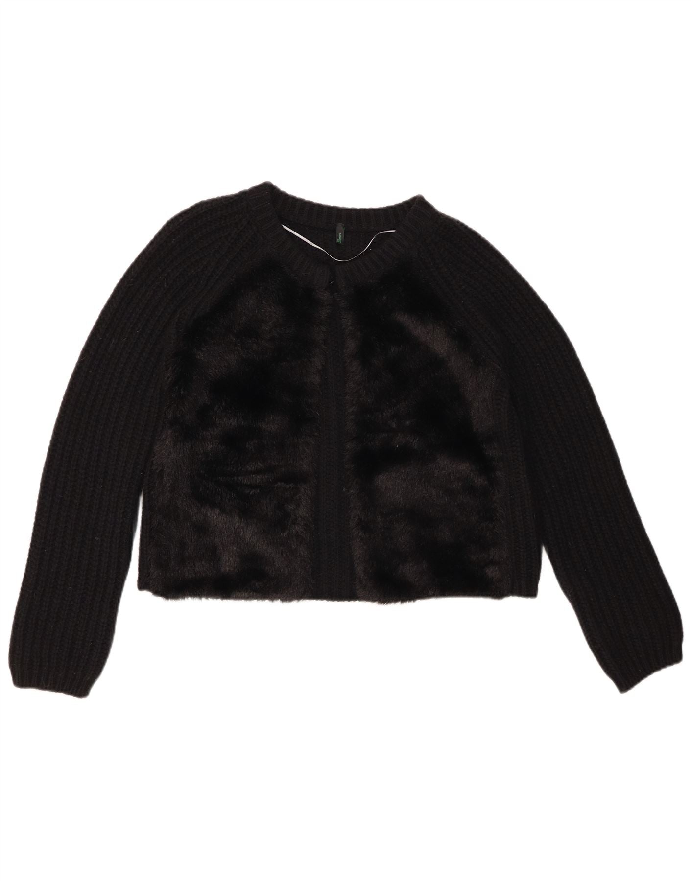 BENETTON Suéter tipo cárdigan corto para mujer UK 10 Small Lana negra