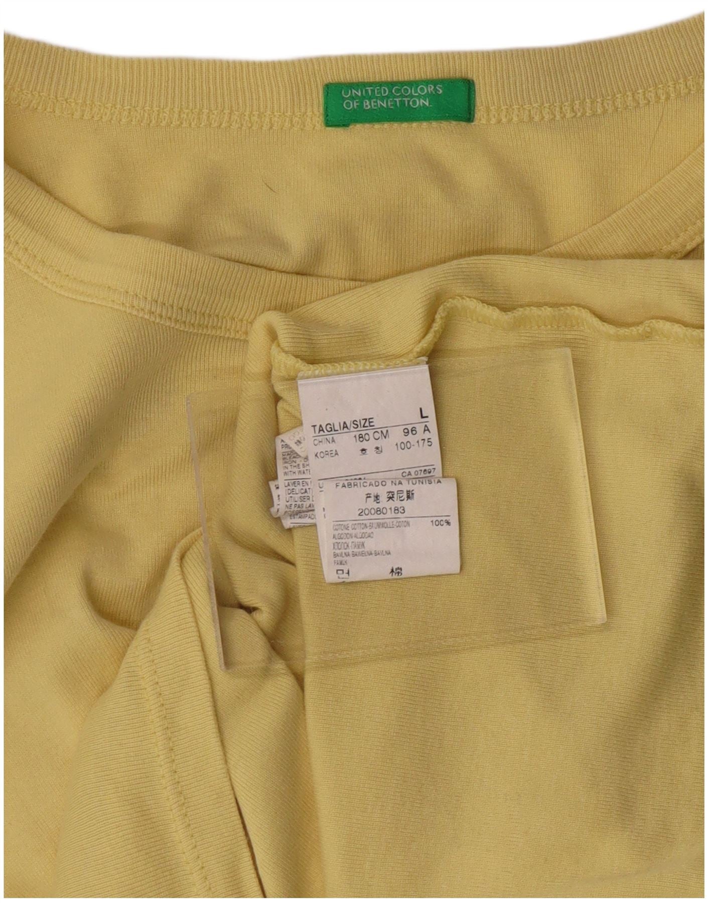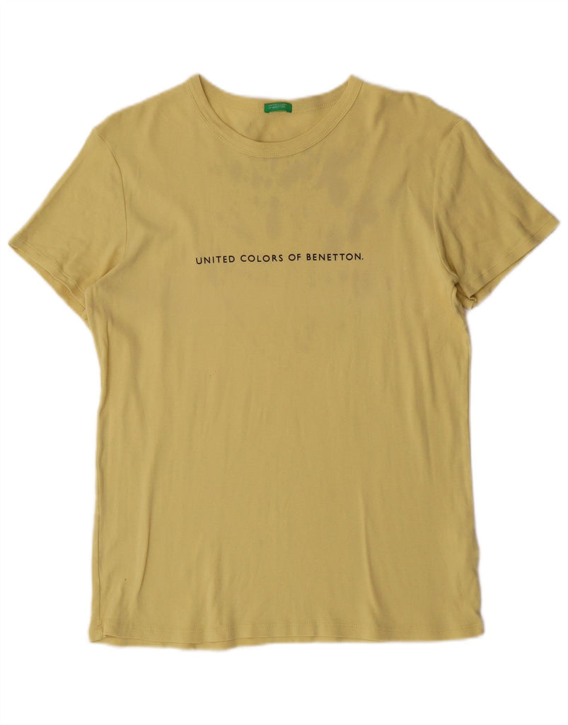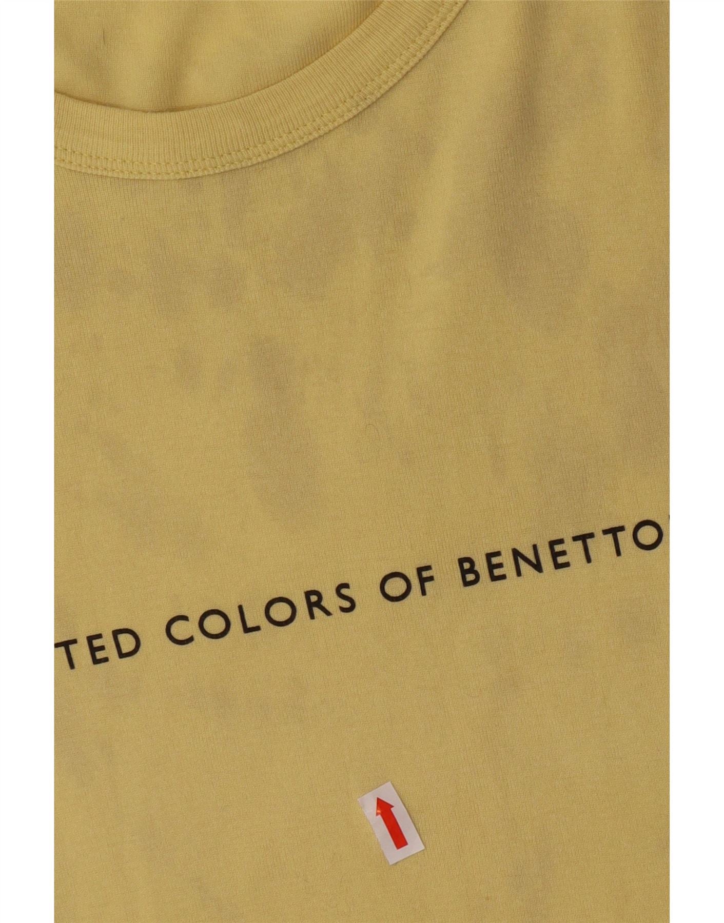 BENETTON Camiseta gráfica para mujer Top grande de algodón amarillo