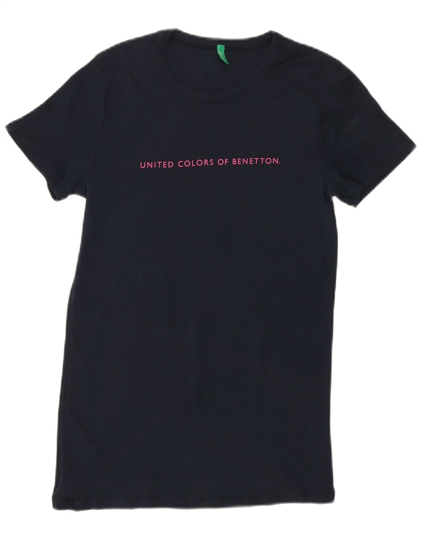 BENETTON Camiseta gráfica para mujer Top UK 12 Medium Azul marino Algodón