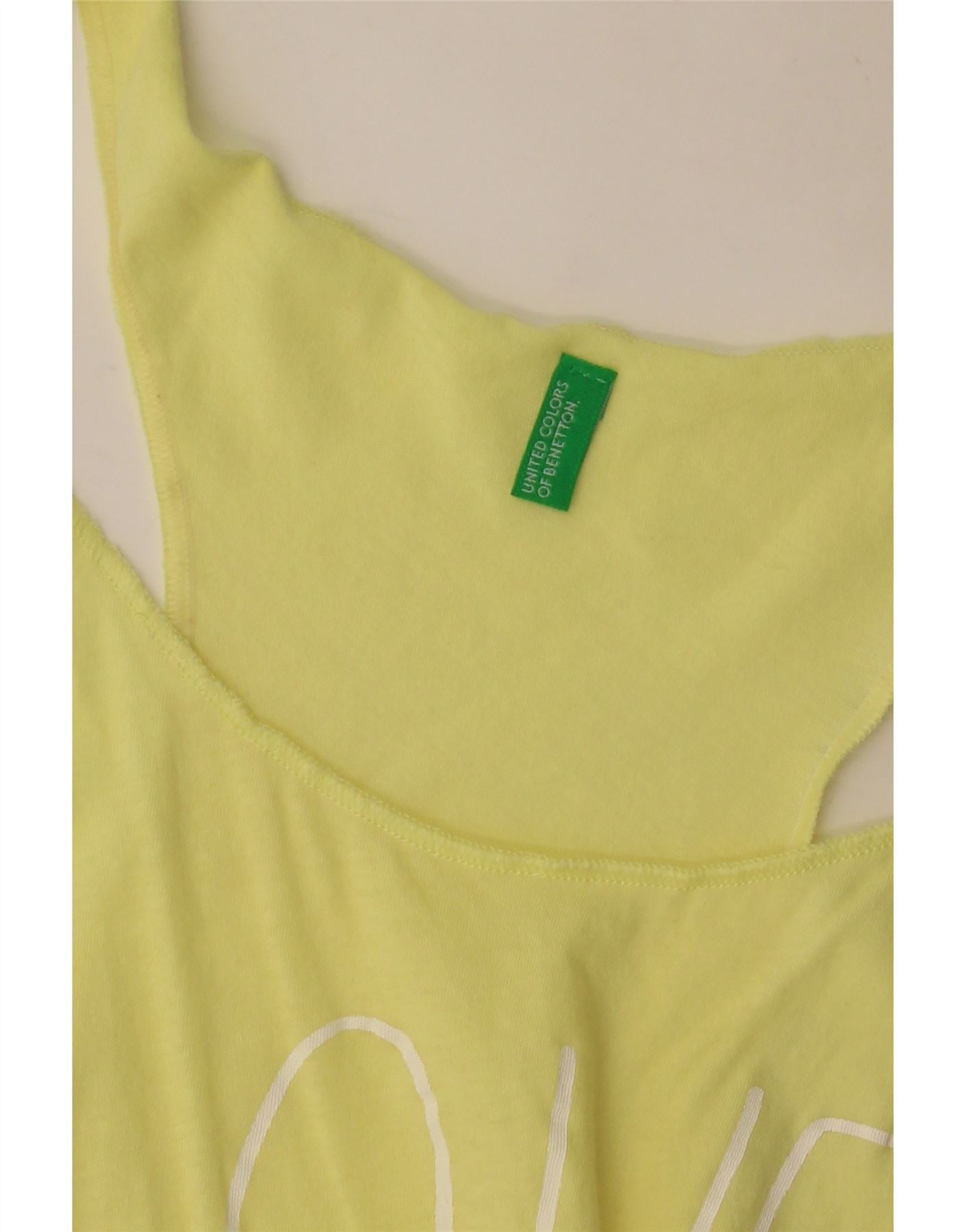 BENETTON Top tipo túnica con gráfico para mujer UK 8 Small Yellow Colourblock Beach
