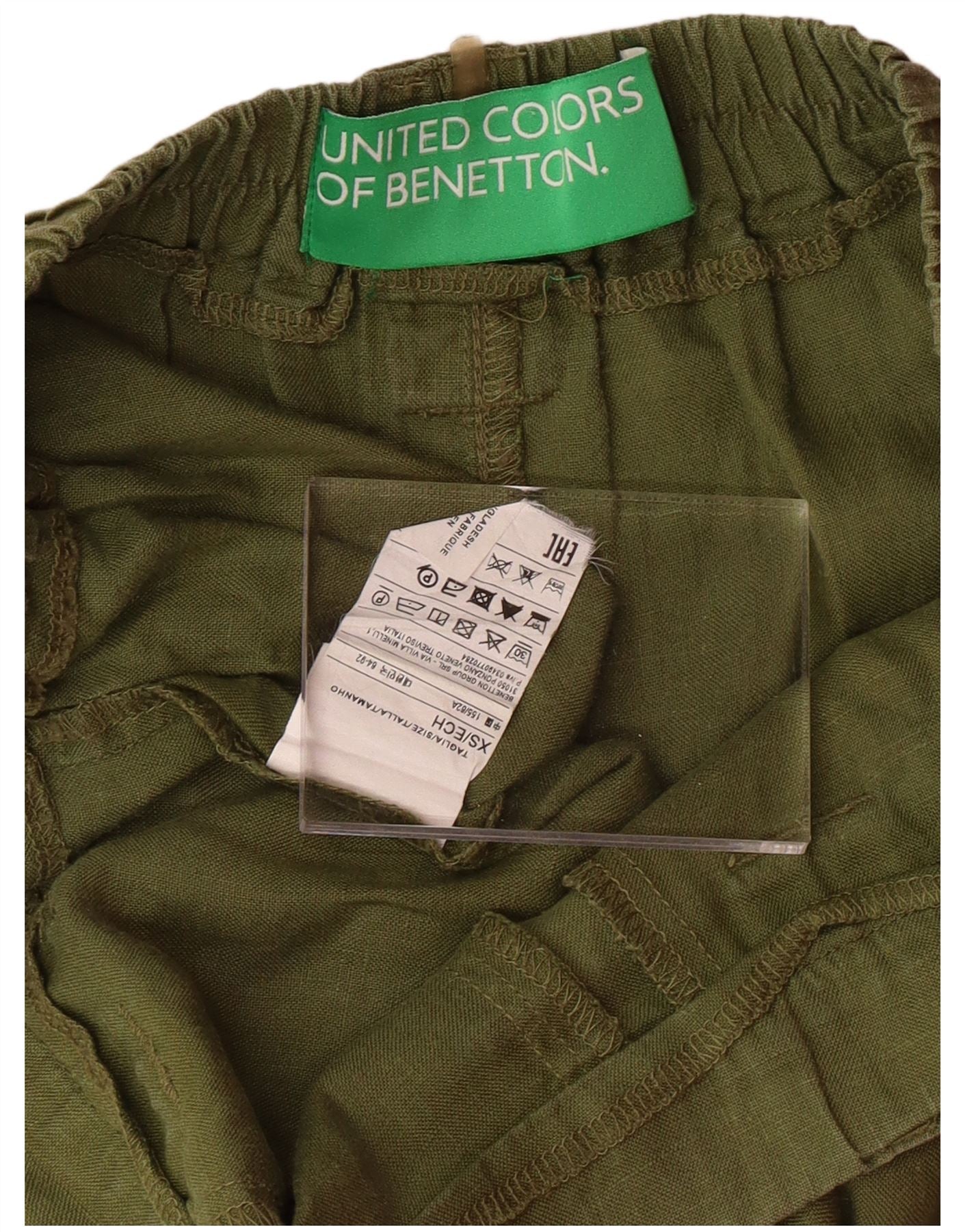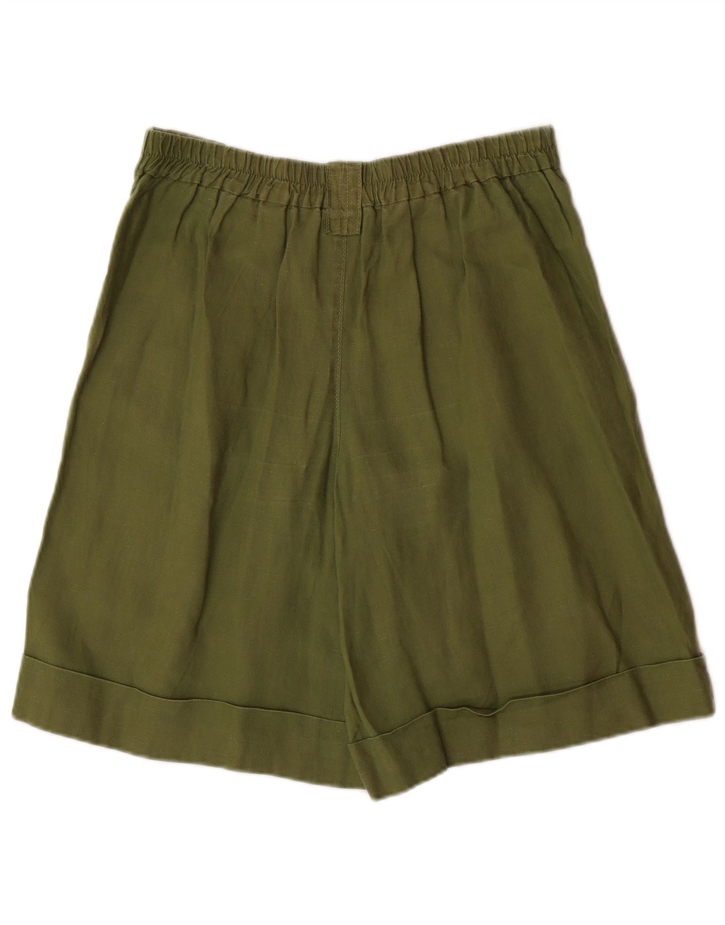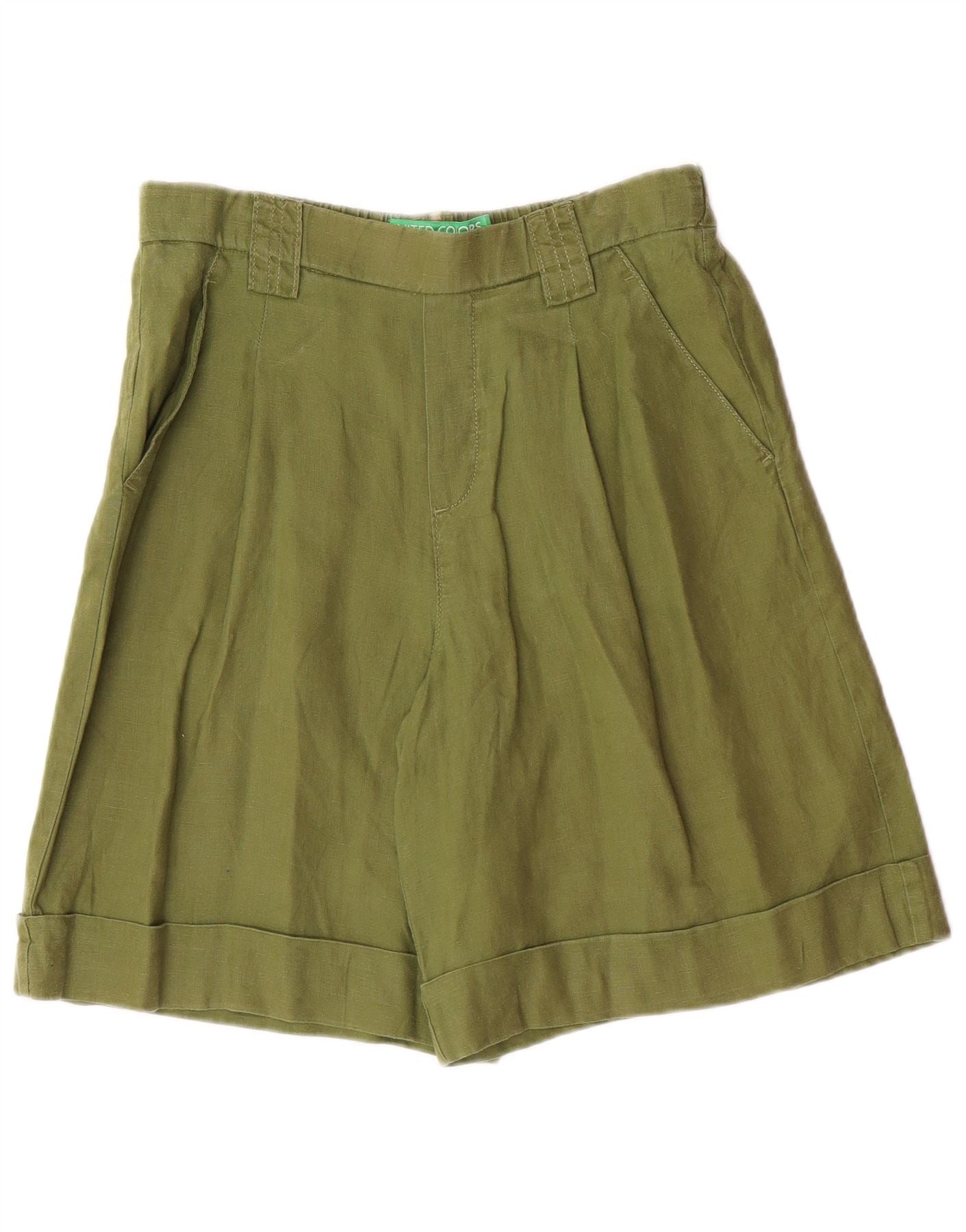 BENETTON Pantalones cortos casuales de talle alto para mujer XS W28 Lino verde