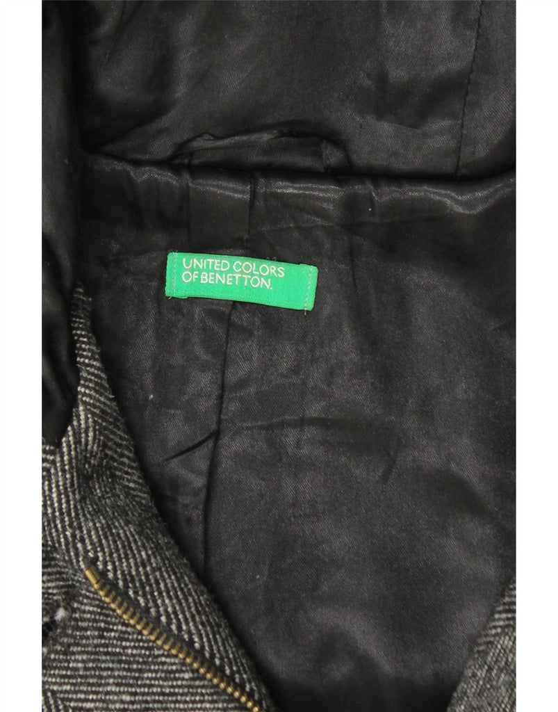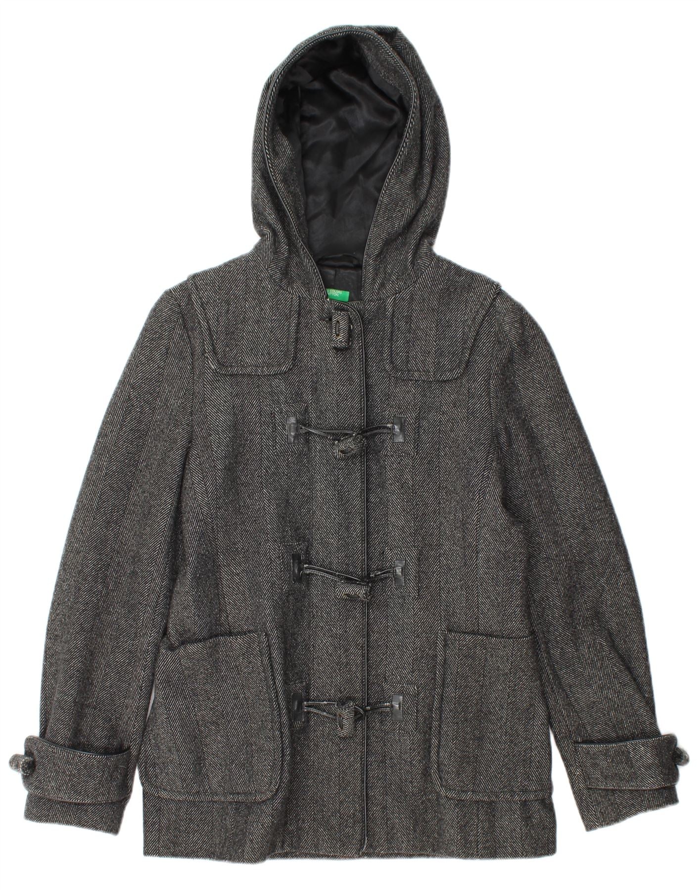 BENETTON Trenca con capucha para mujer IT 44 Medium Black Herringbone Wool