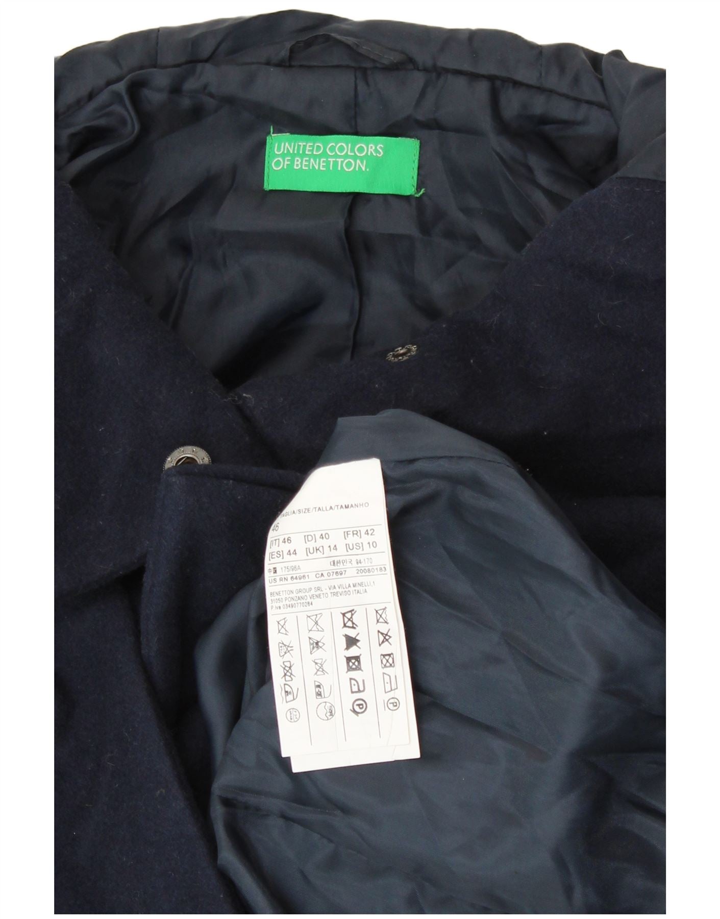 BENETTON Trenca con capucha para mujer UK 44 Grande Lana azul marino