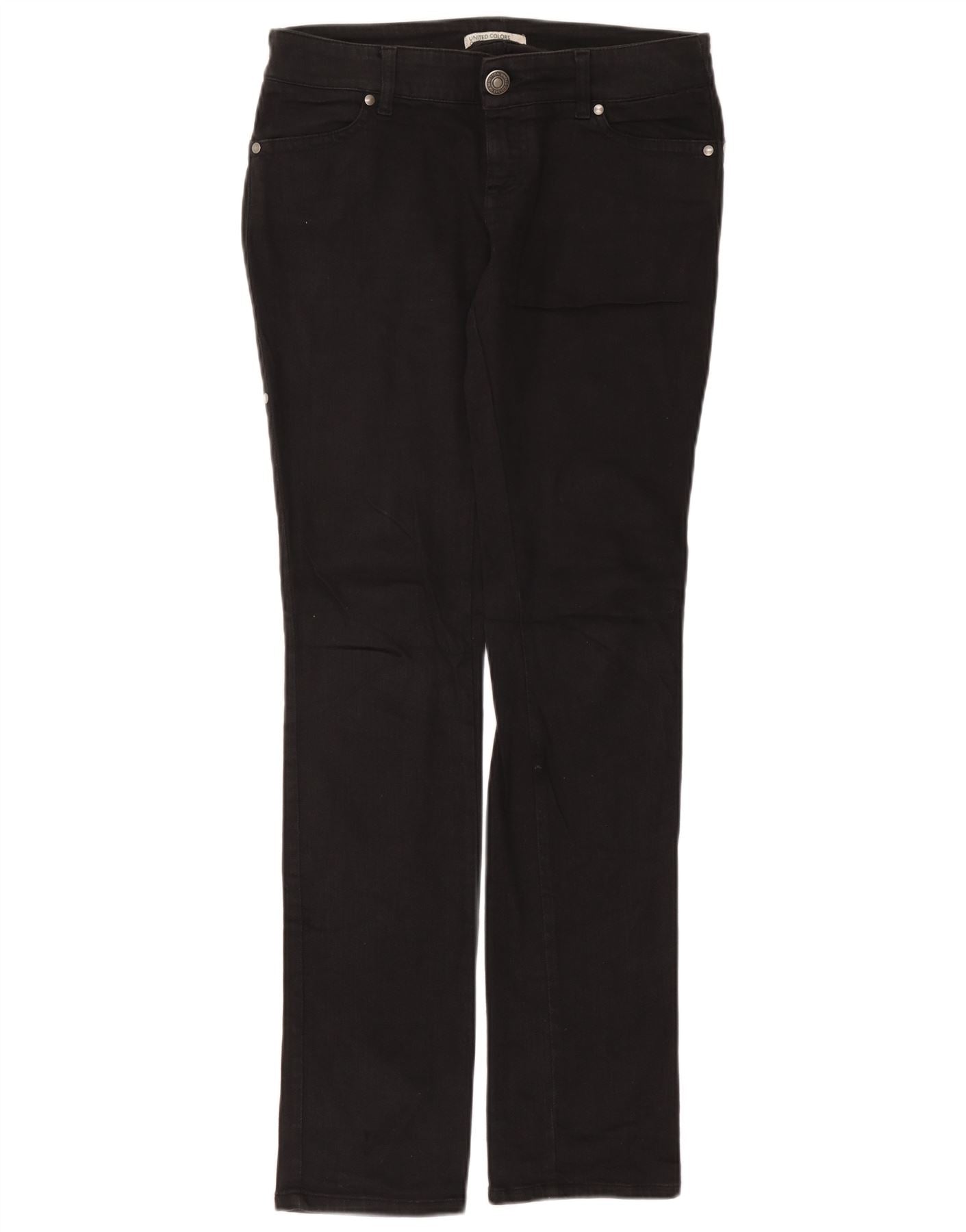Benetton Pantalones Casuales De Talle Bajo IT 42 Medium W30 L34 Negro Algodón