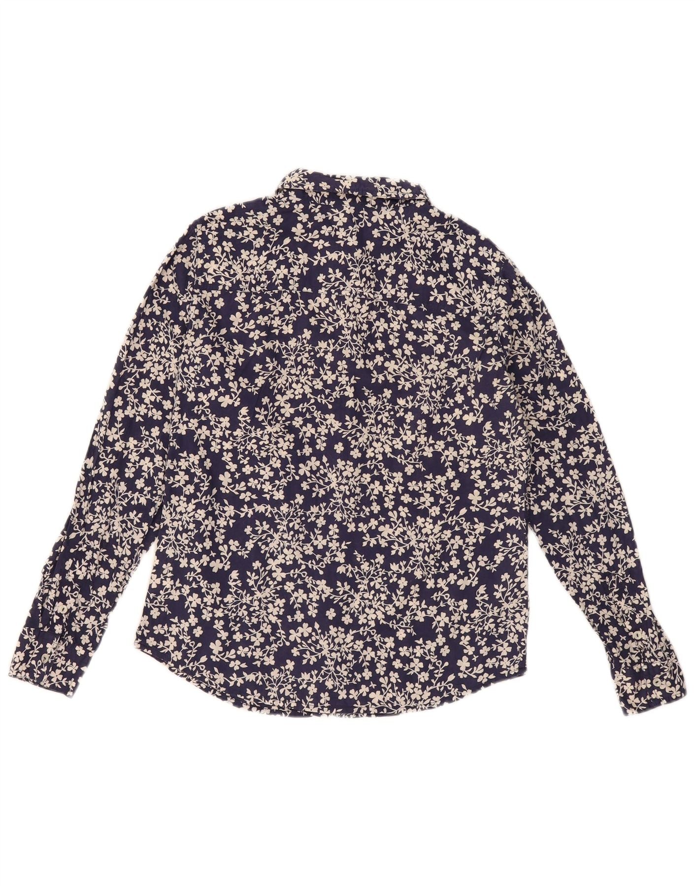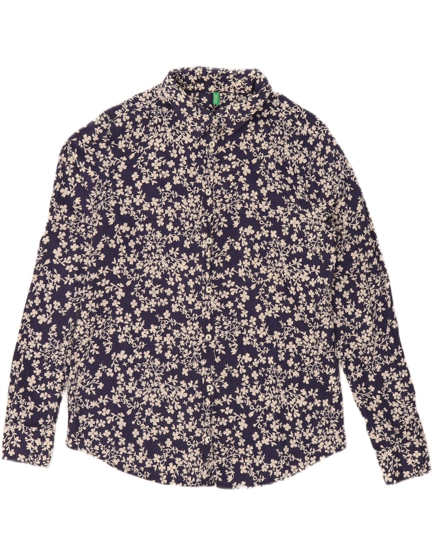 BENETTON Camisa extragrande para mujer UK 10 Small Azul marino Floral Algodón