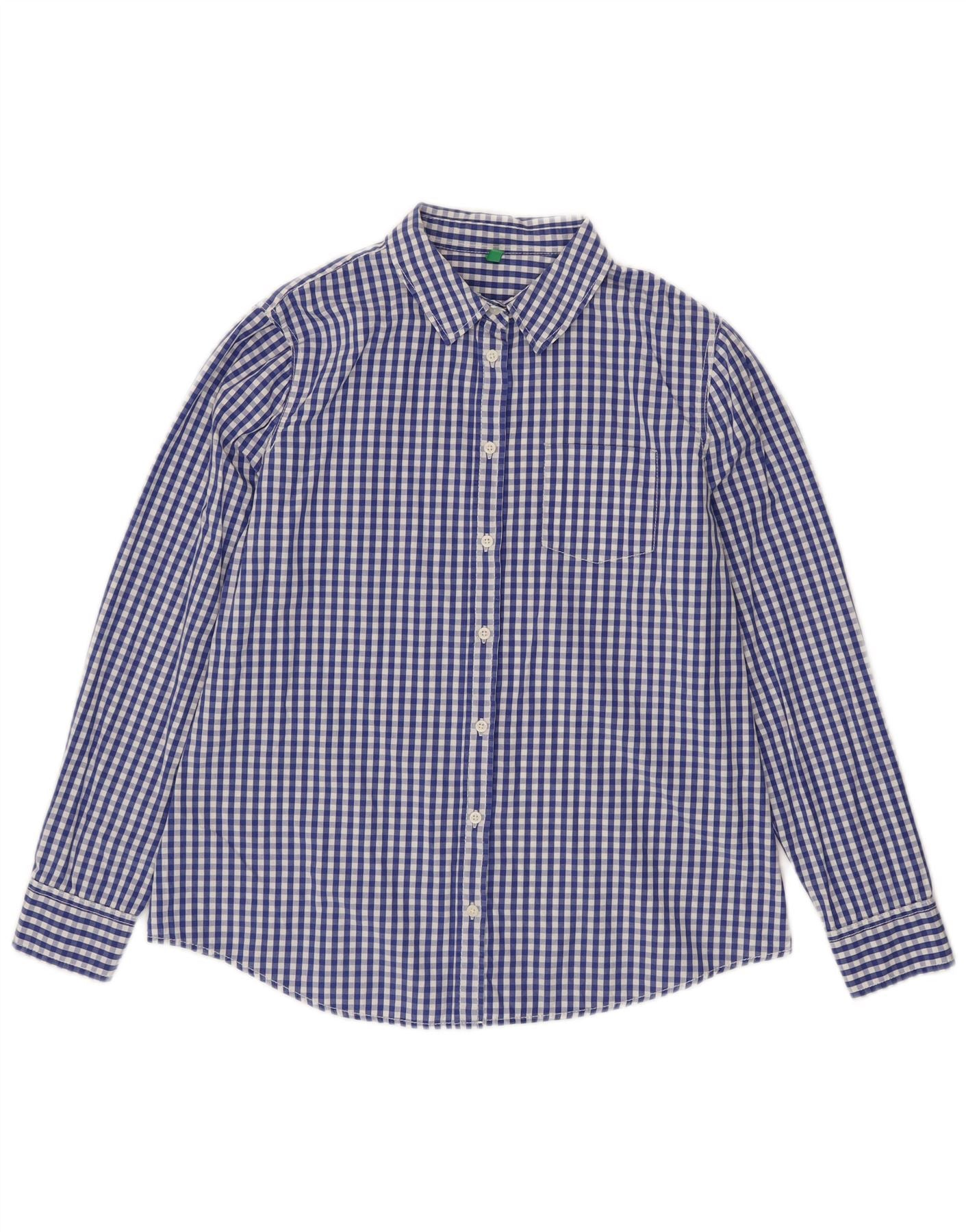 Camisa Benetton Mujer ES 46 Grande Algodón A Cuadros Azul