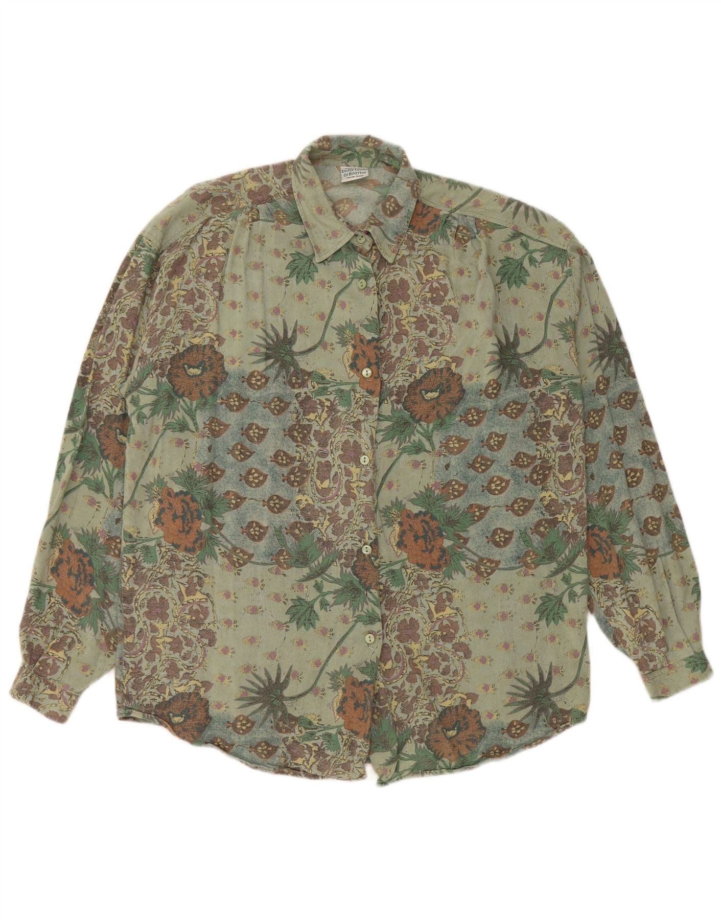 BENETTON Camisa Mujer ES 40 XL Viscosa Floral Verde