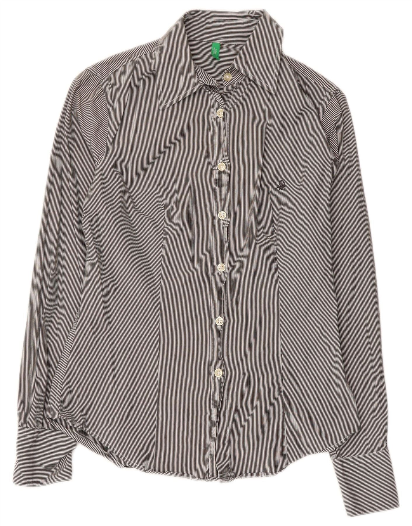 BENETTON Camisa Mujer UK 8 Small Gris Pinstripe