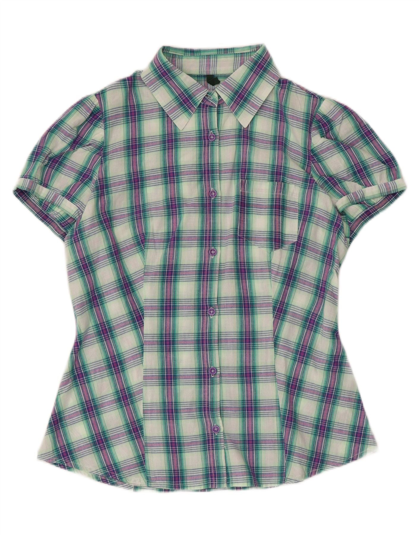 BENETTON Camisa de manga corta para mujer UK 44 Mediana Algodón a cuadros multicolor