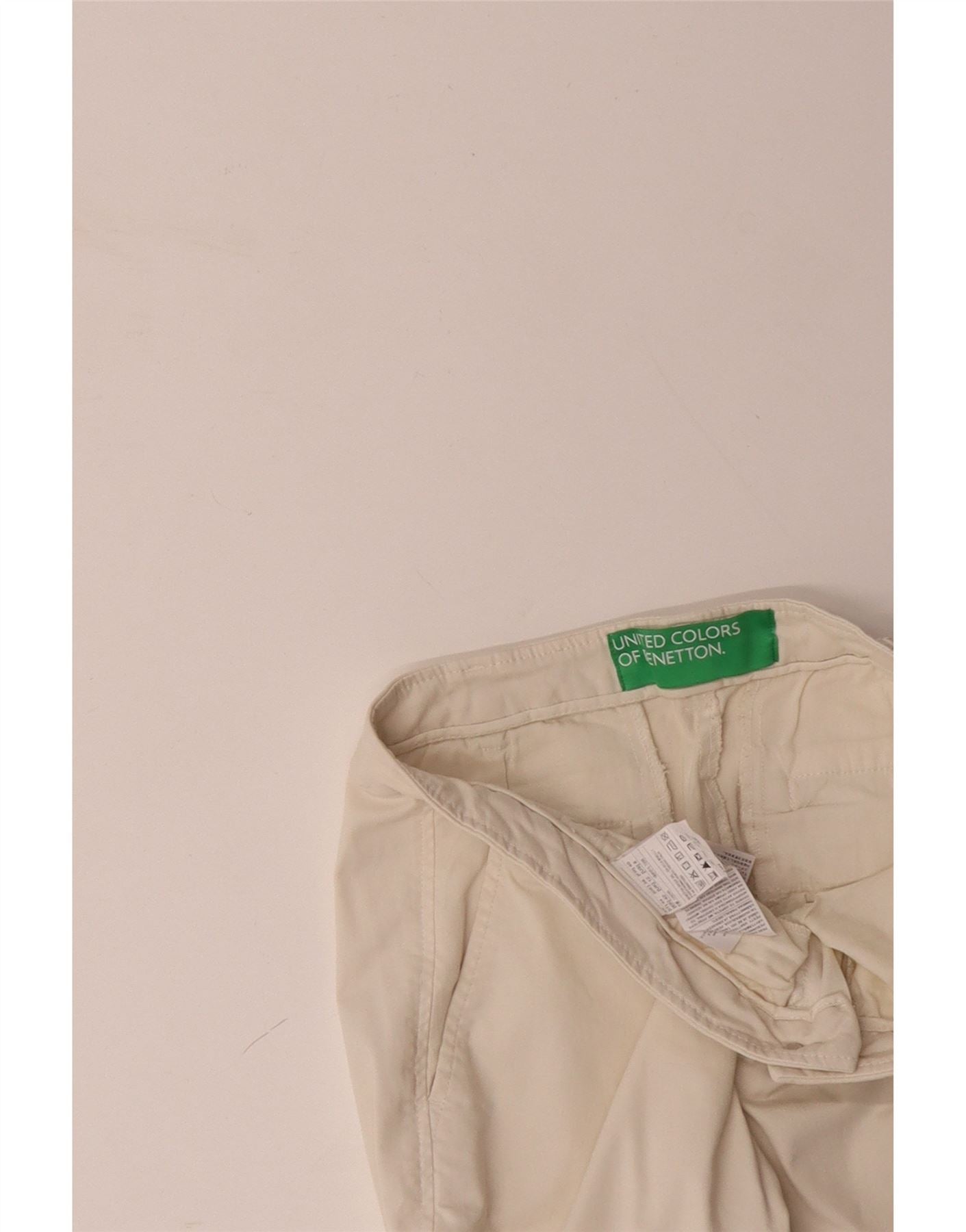 BENETTON Pantalones chinos ajustados para mujer UK 12 Medium W32 L28 Algodón blanco roto