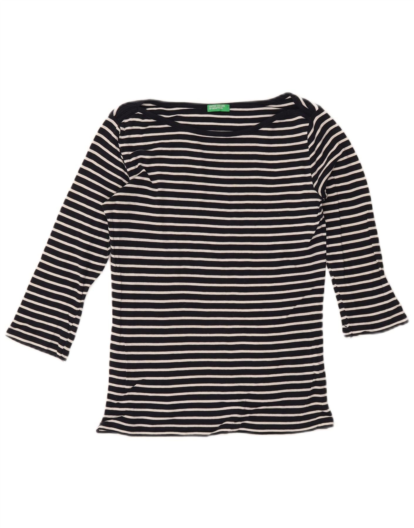 Home > Ropa Benetton Vintage > De las mujeres > BENETTON Top para mujer manga 3/4 UK 10 Small Algodón a rayas azul marino